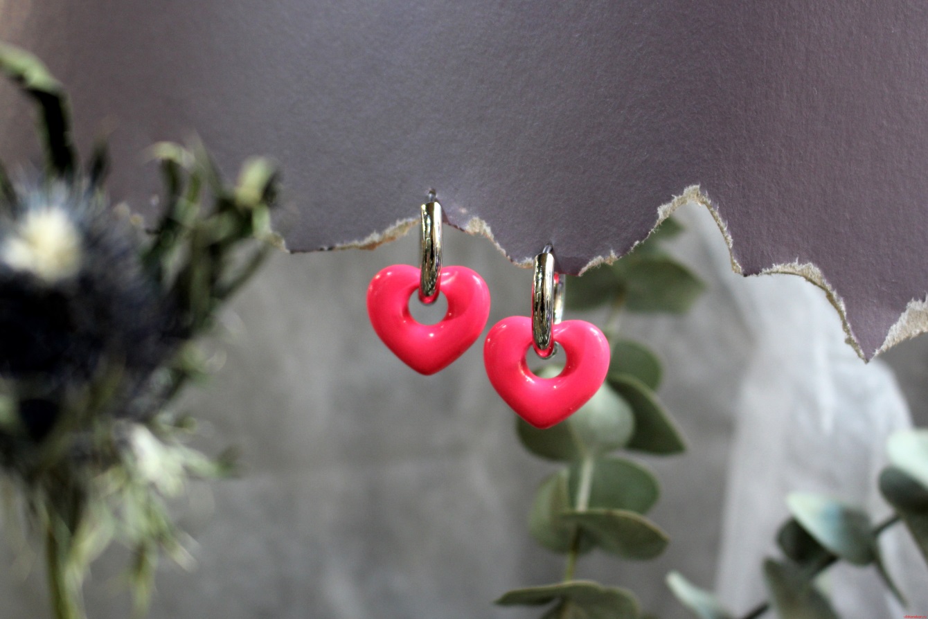 Серьги «Сердечки» неоново-розовые, биж. сплав MOONA