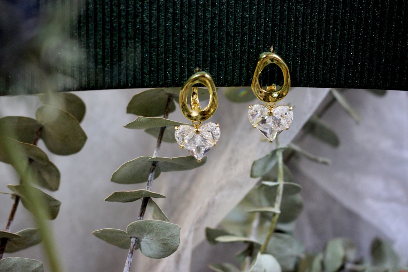 Серьги «Сердце из циркона» (золотые) и биж. сплава MOONA