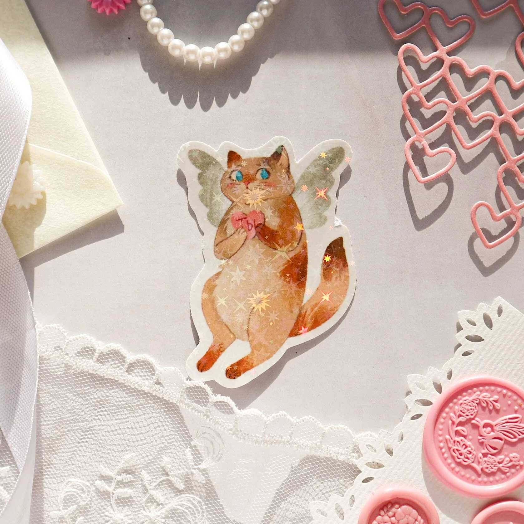 Голографический стикер 6 см. «Мемные котята» (по 2 шт каждого)