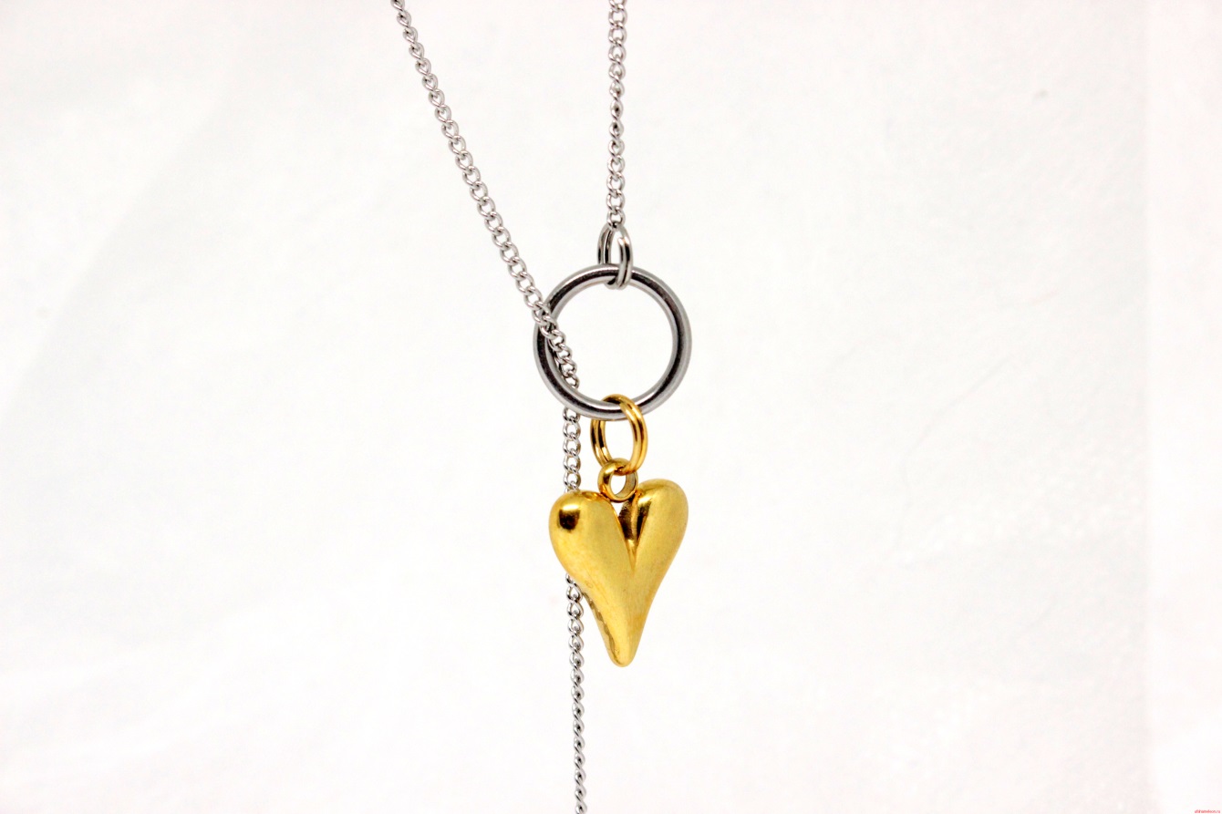 Колье-галстук с золотым сердцем Любовь и Камни