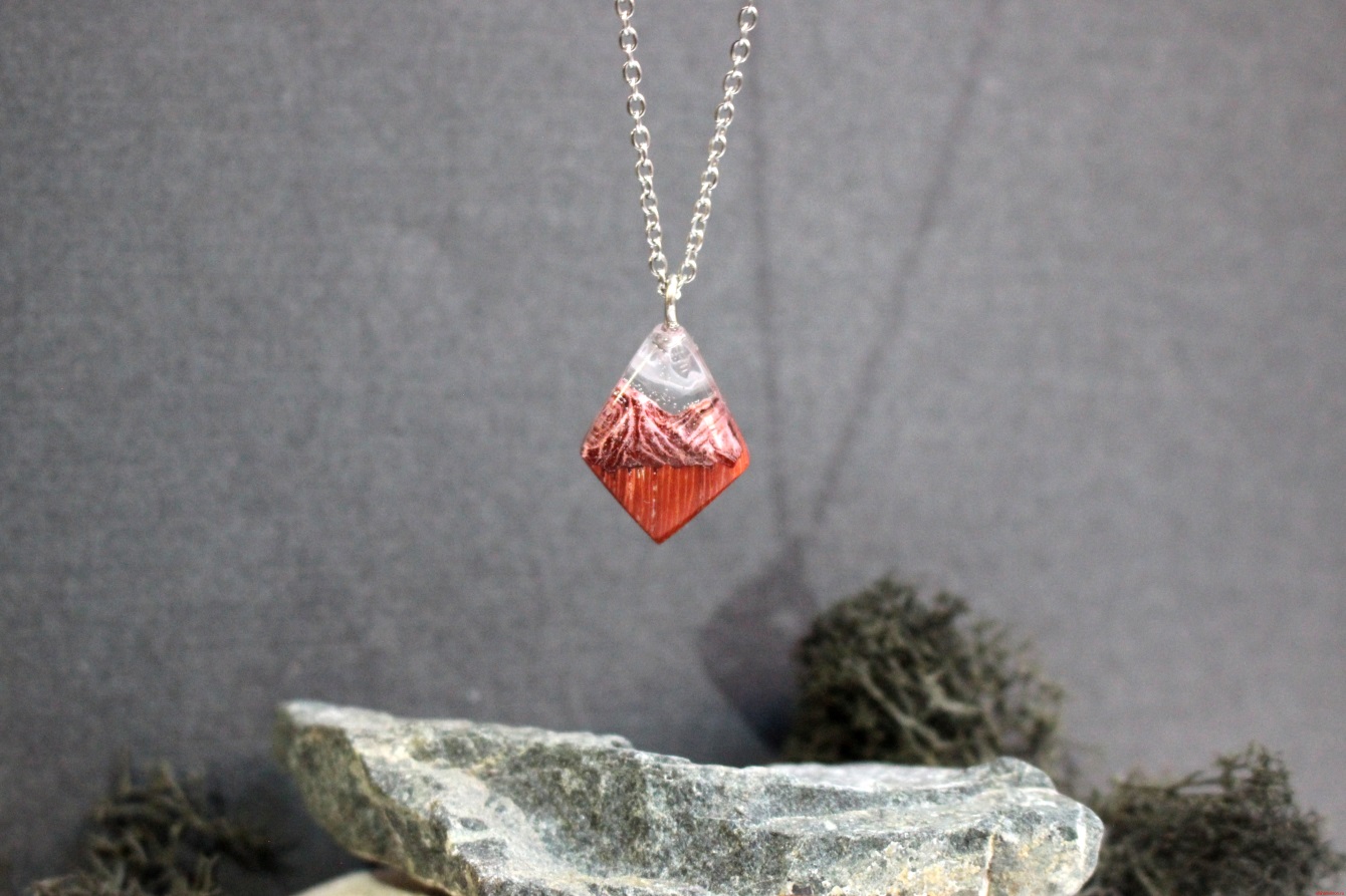 Кулон ромб «Горы на закате» оранжевый из падука