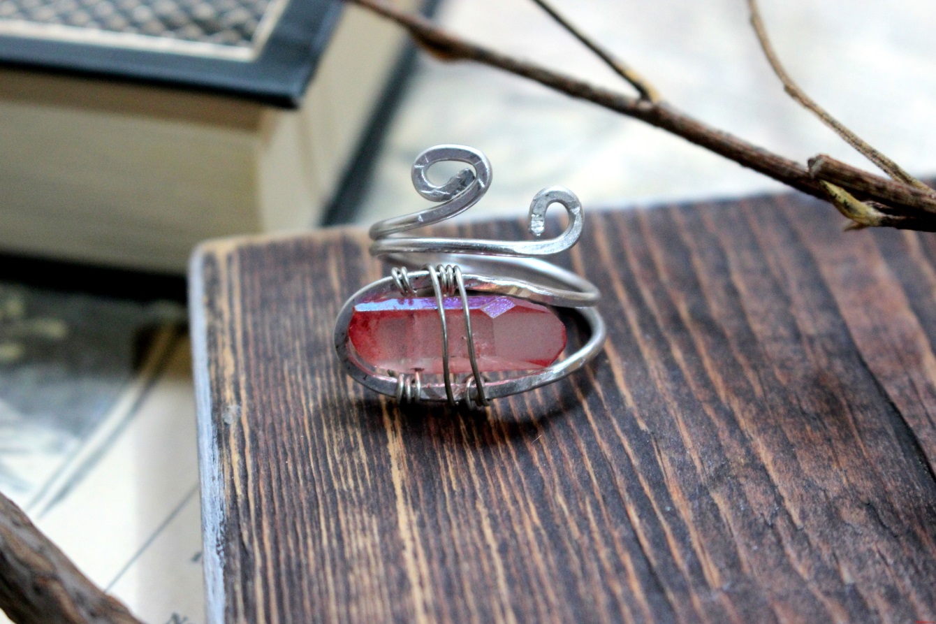 Кольцо из алюминия и латуни с розовым кристаллом-кварцем Sasha Decor