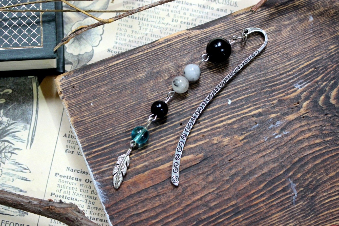 Закладка c агатом, обсидианом, бусинами и пером Sasha Decor