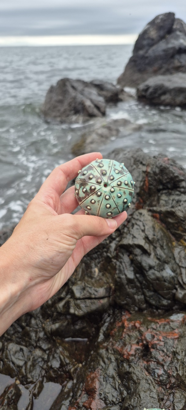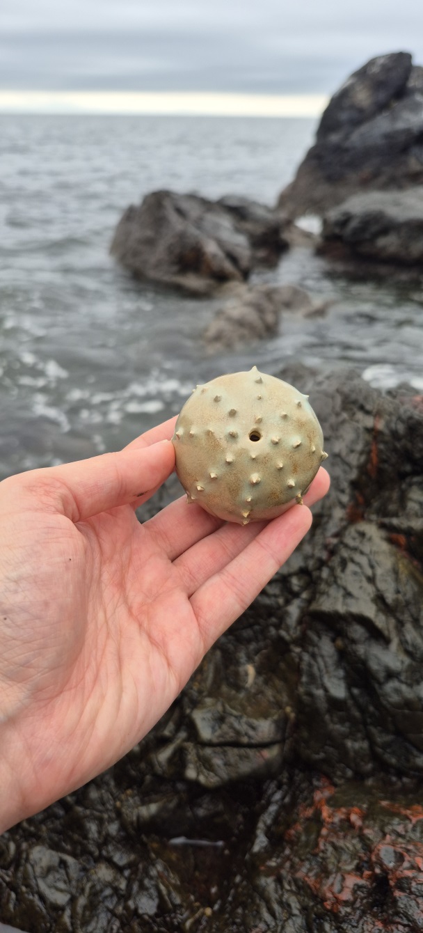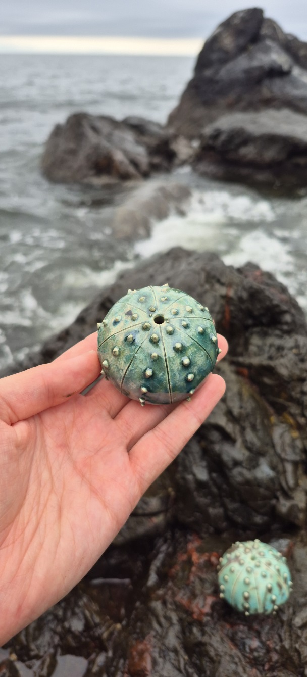 Морской ёж зелёный с пятнышками сувенирный керамический