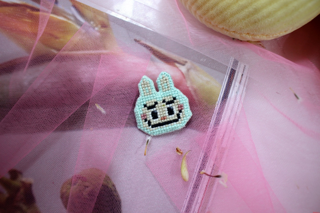 Брошка «Лабубу» (брюзовый) c вышивкой в ассортименте Threadpunk