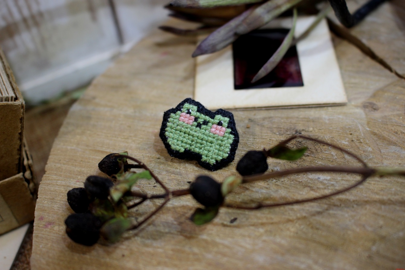 Пин «Пиксельная жабка» (светло-зелёная) c вышивкой в ассортименте Threadpunk