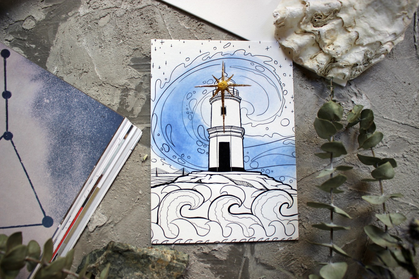 Деревянная брошка «Маяк в сумерках» сердечко, Nope Jam