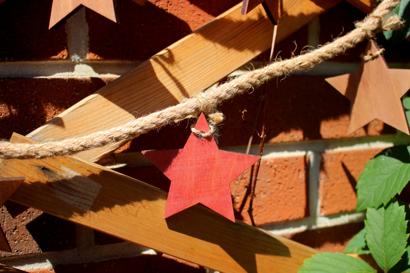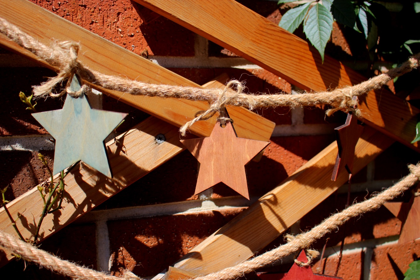 Интерьерная деревянная гирлянда из берёзовой фанеры на вощенной верёвке;
