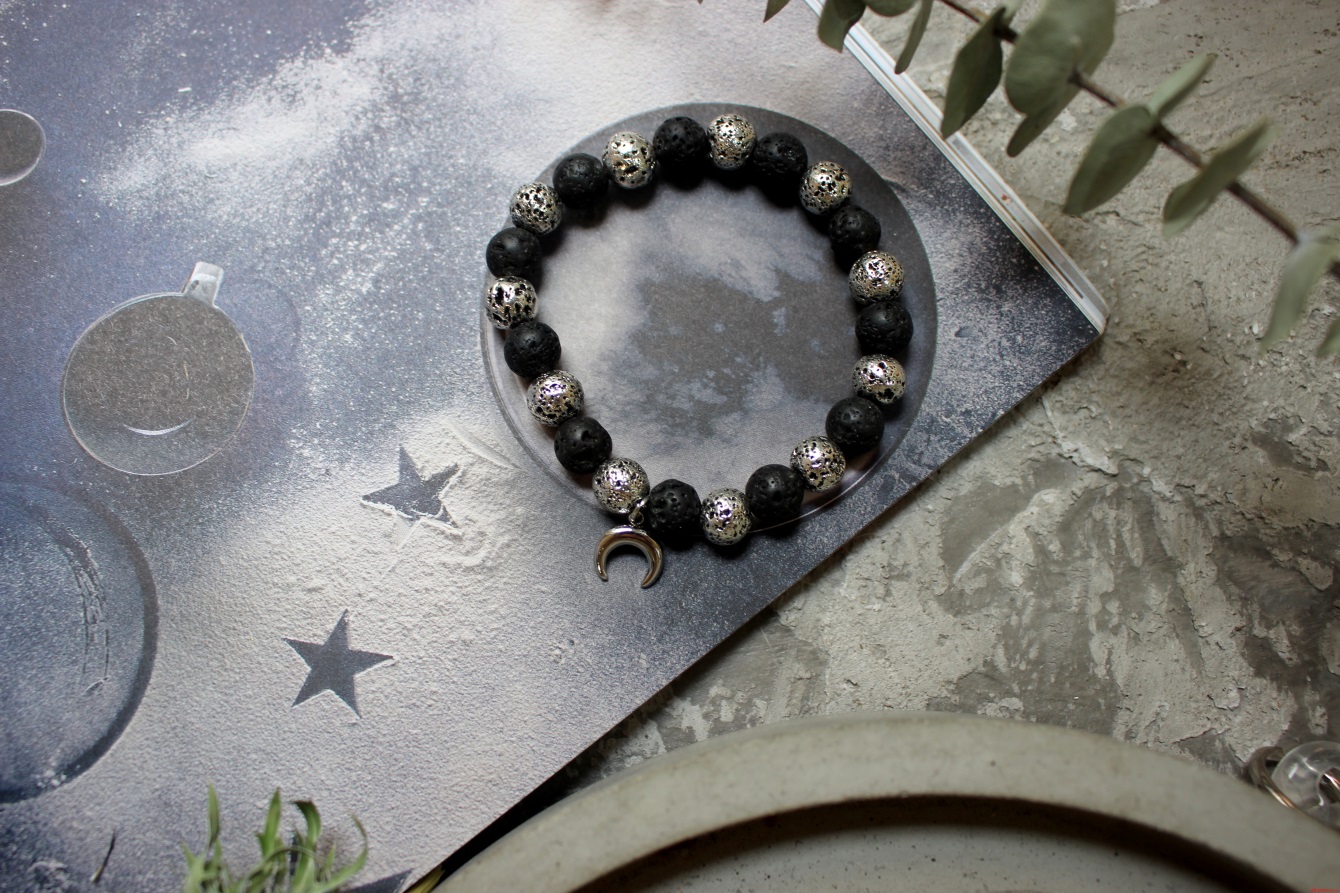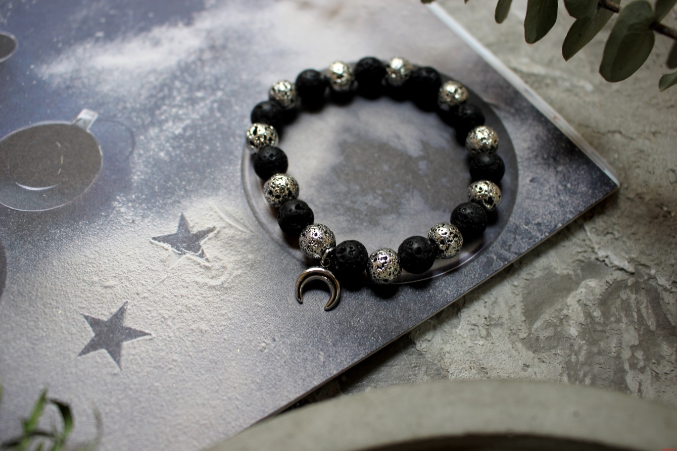 Браслет «Серебряная лава» из вулканической лавы и вставкой из бижутерного сплава MOONA