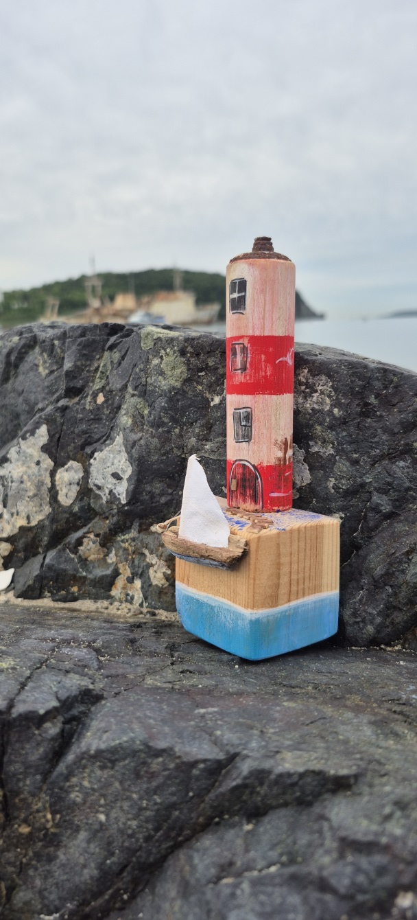 Фигурка в технике дрифтвуд: создаётся из обмытых морем кусками дерева, которые окрашиваются акрилом и покрываются лаком; Размер: ~ 16, 5 х 5 см