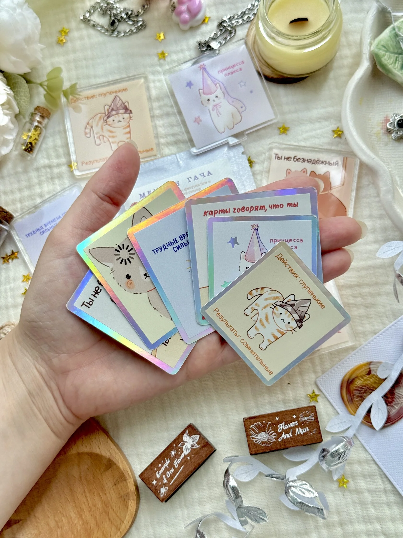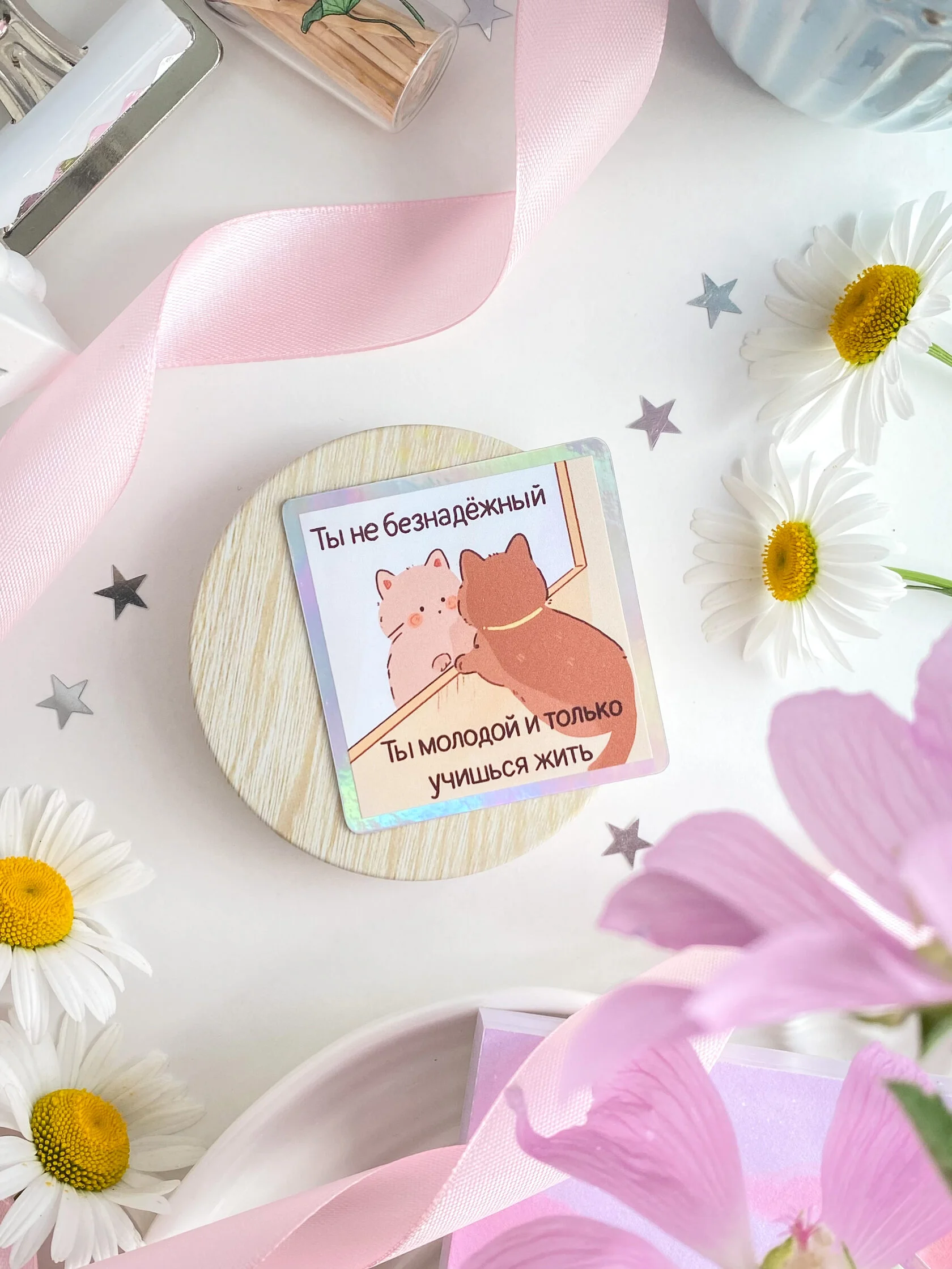 Мы не боимся экспериментировать с новыми плёнками для стикеров и необычными товарами, поэтому здесь вы можете найти, пожалуй, самый разнообразный ассортимент милых вещей с котиками (и не только))!