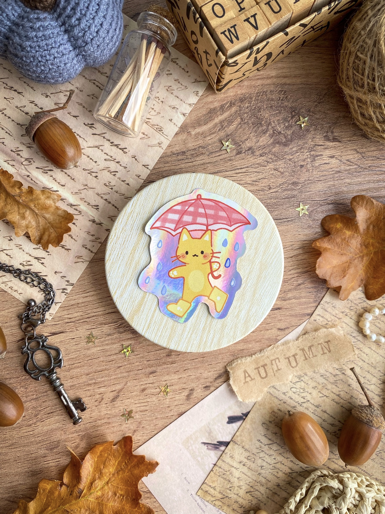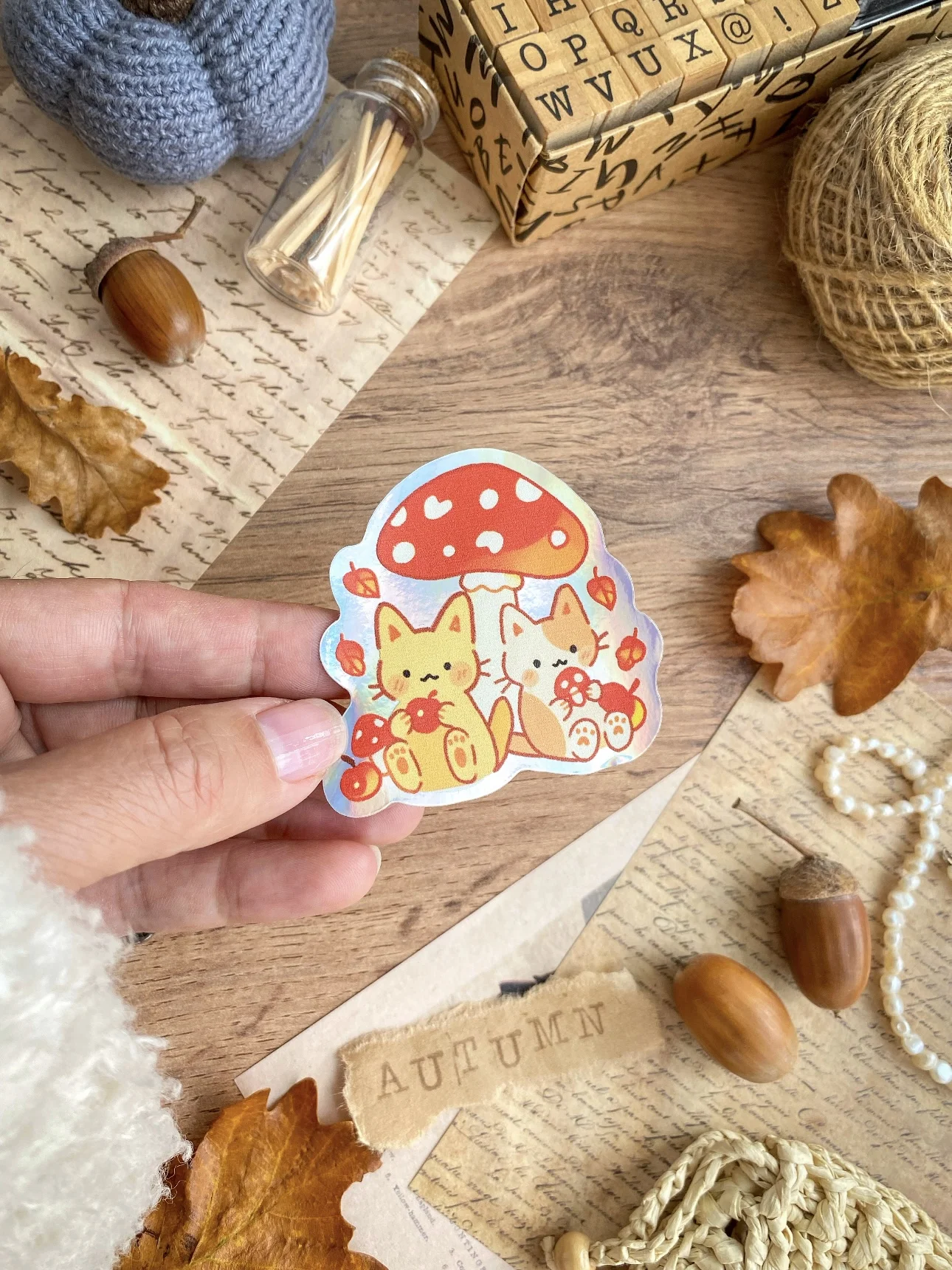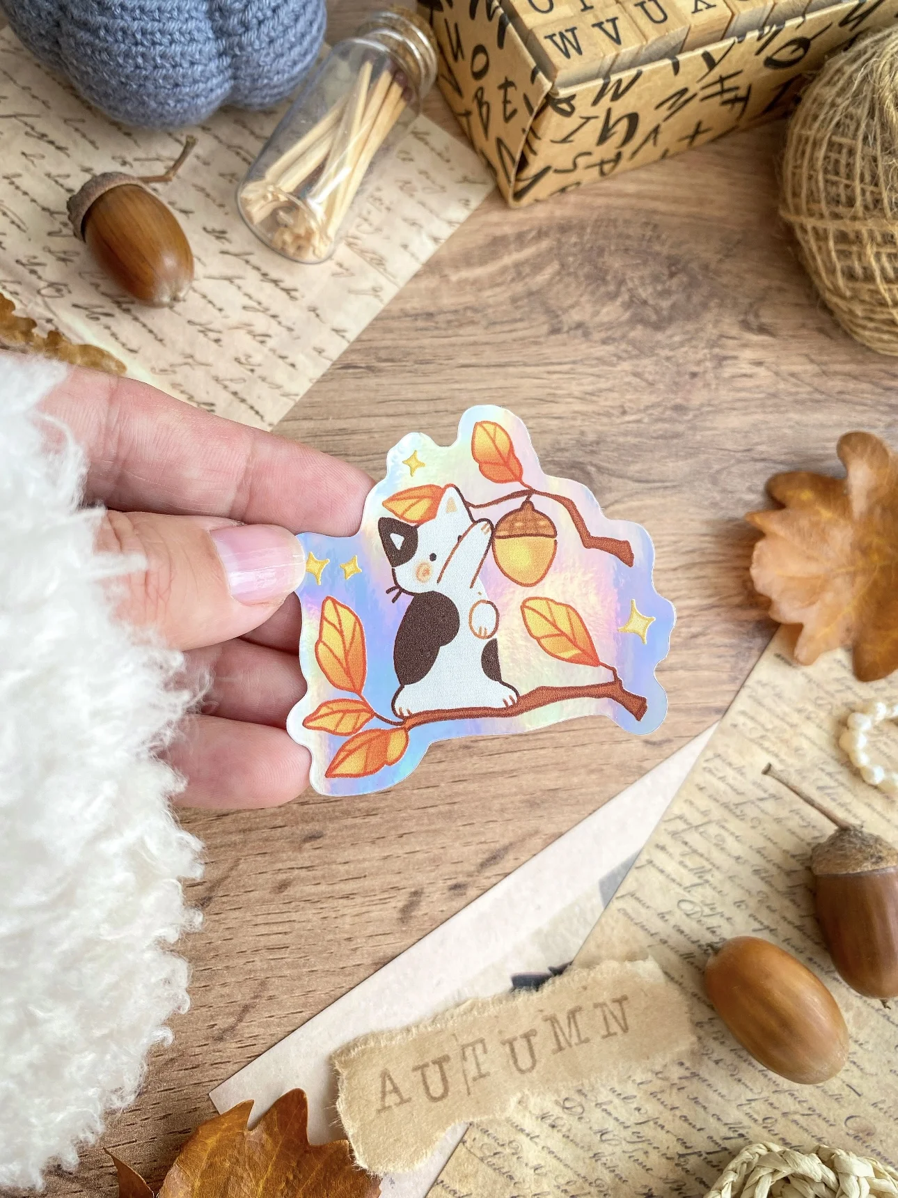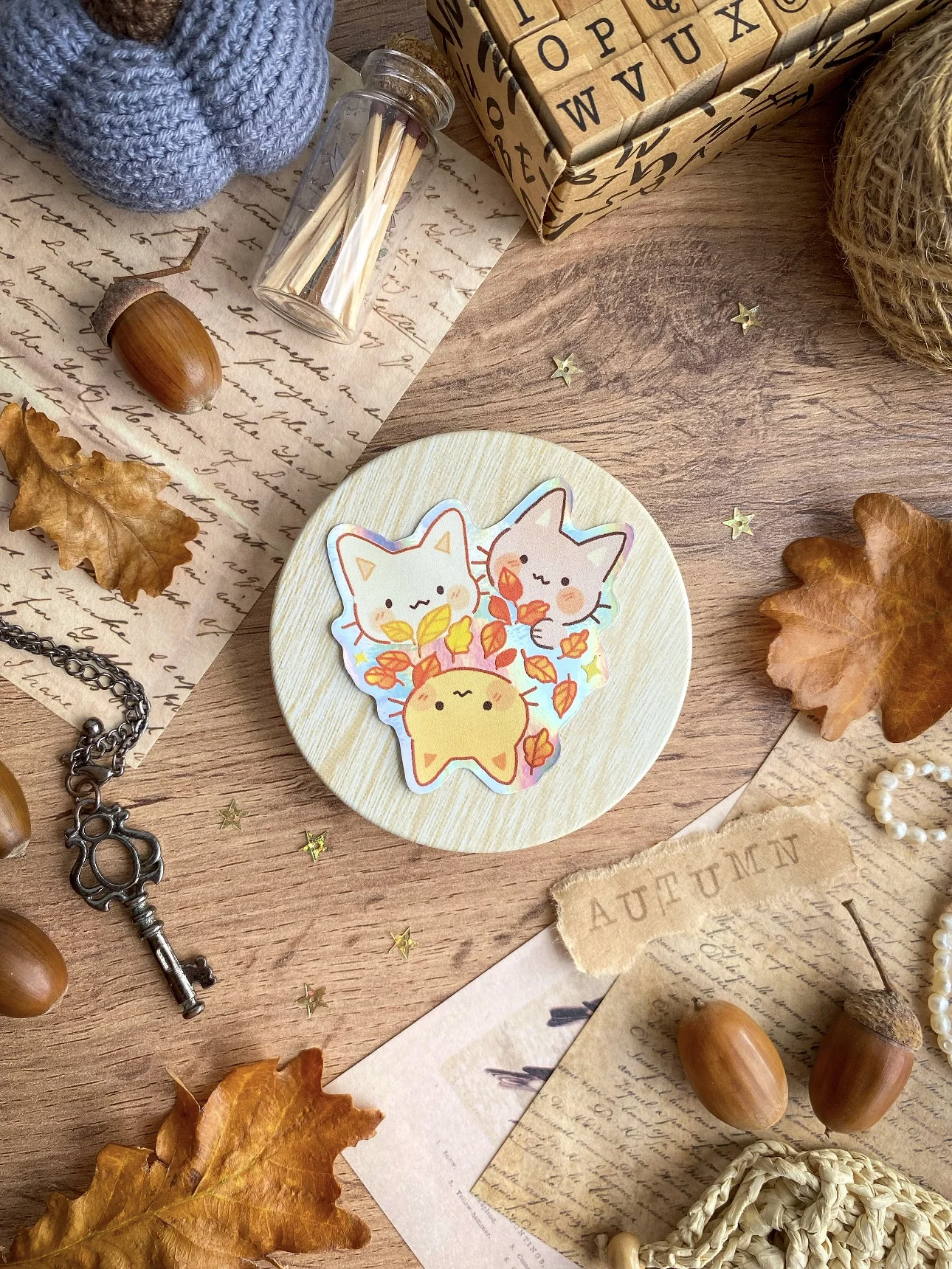 Голографический стикер 6 см. «Осенние котята» (по 1 шт каждого)