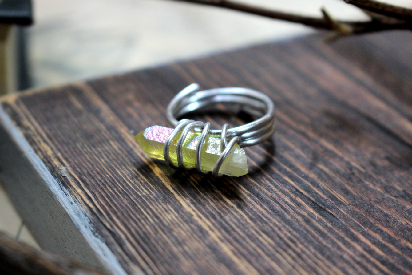 Кольцо из алюминия и латуни с жёлтым кристаллом-кварцем Sasha Decor