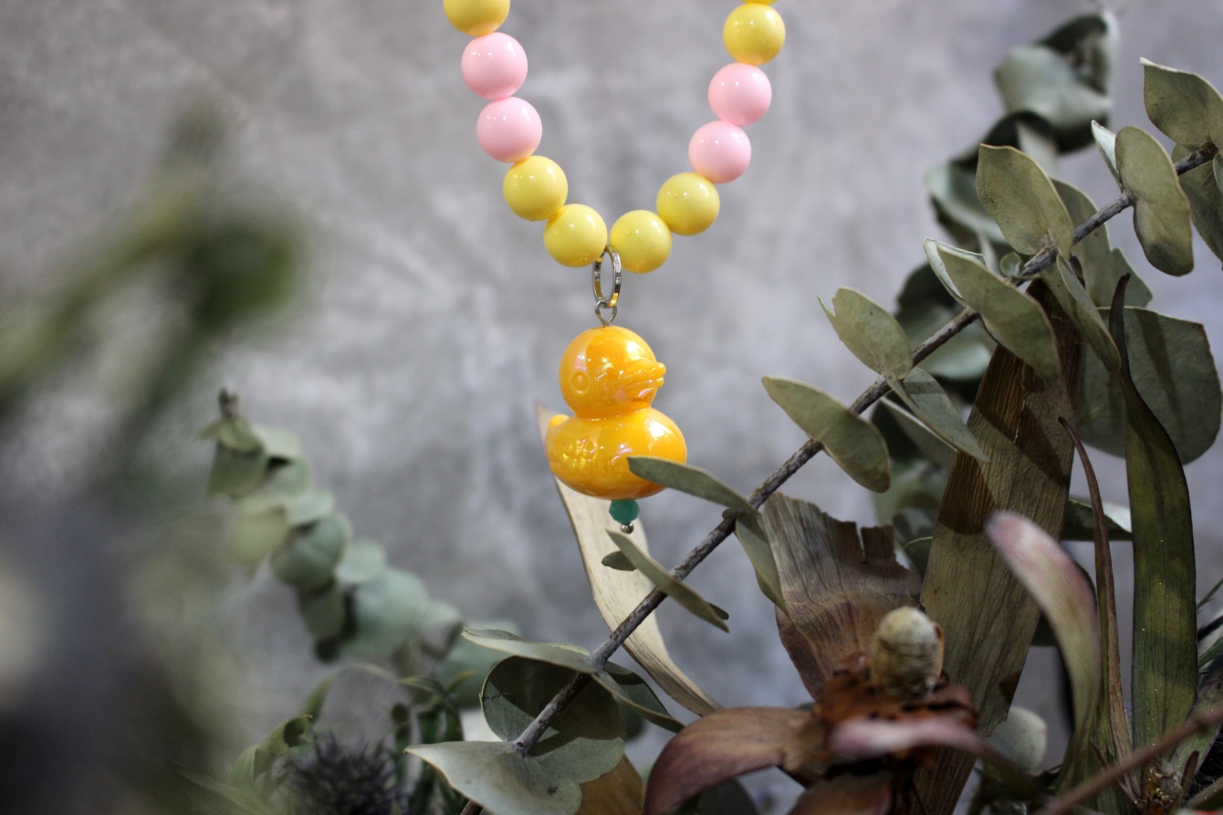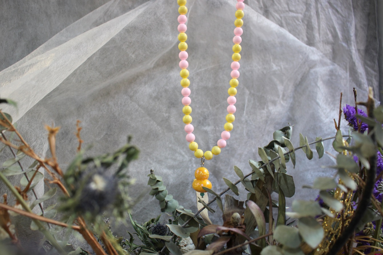 Колье выполнено из акрила и майорки; Фурнитура: бижутерный сплав; Длина изделия: ~ 30 см