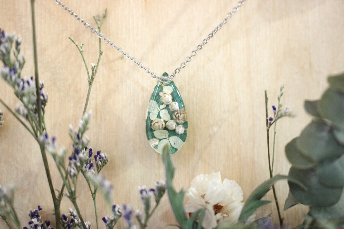 При создании композиции используется итальянская эпоксидная смола, озотамнус и полевые цветы;