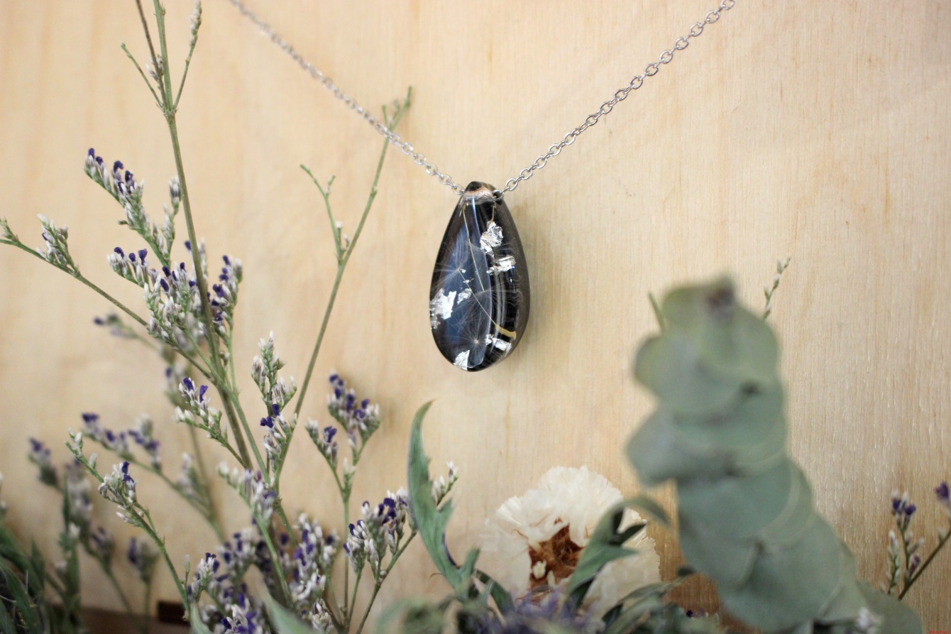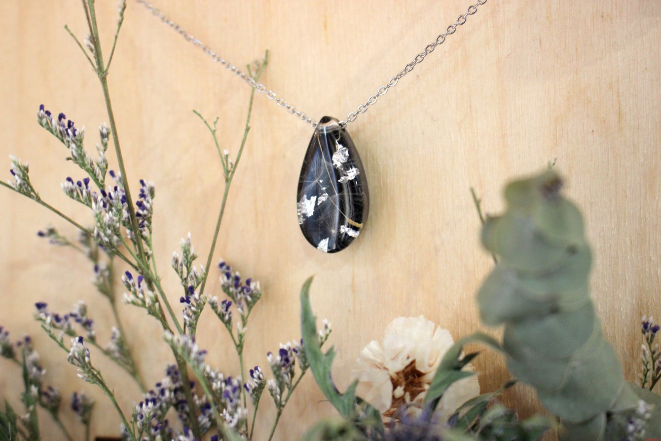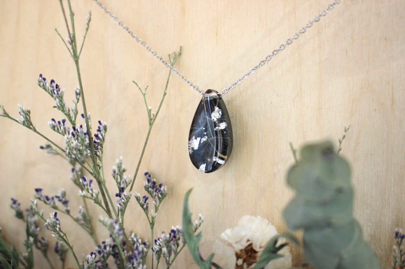 При создании композиции используется итальянская эпоксидная смола, одуванчики и поталь;