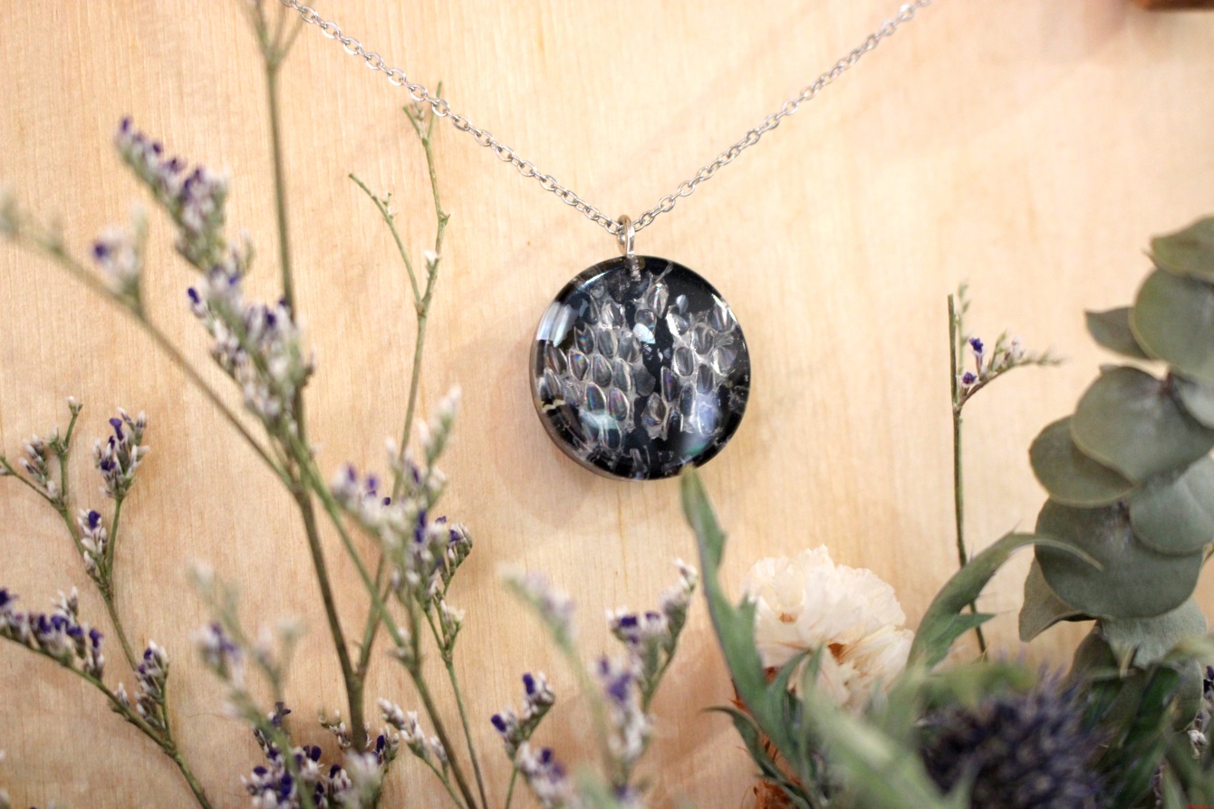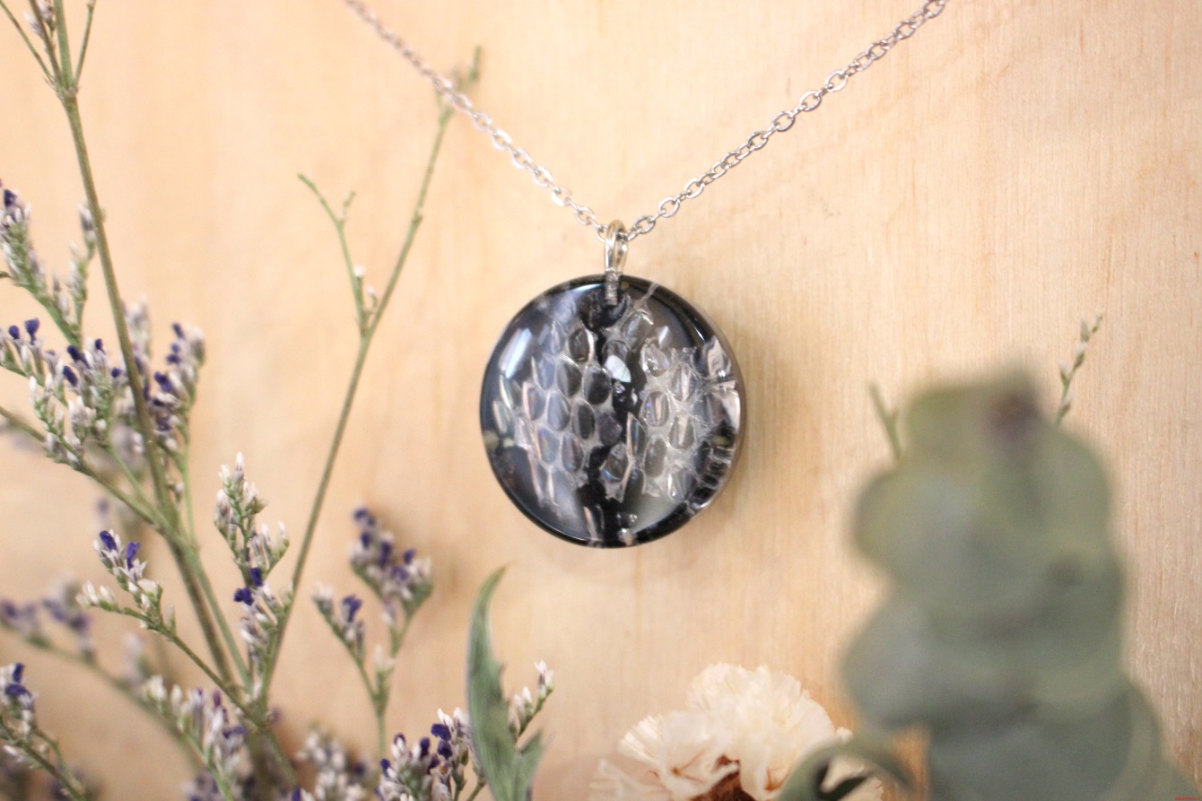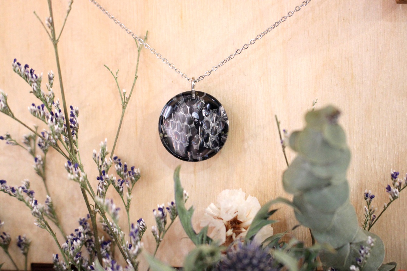 При создании композиции используется итальянская эпоксидная смола, линька змеи и минералы;