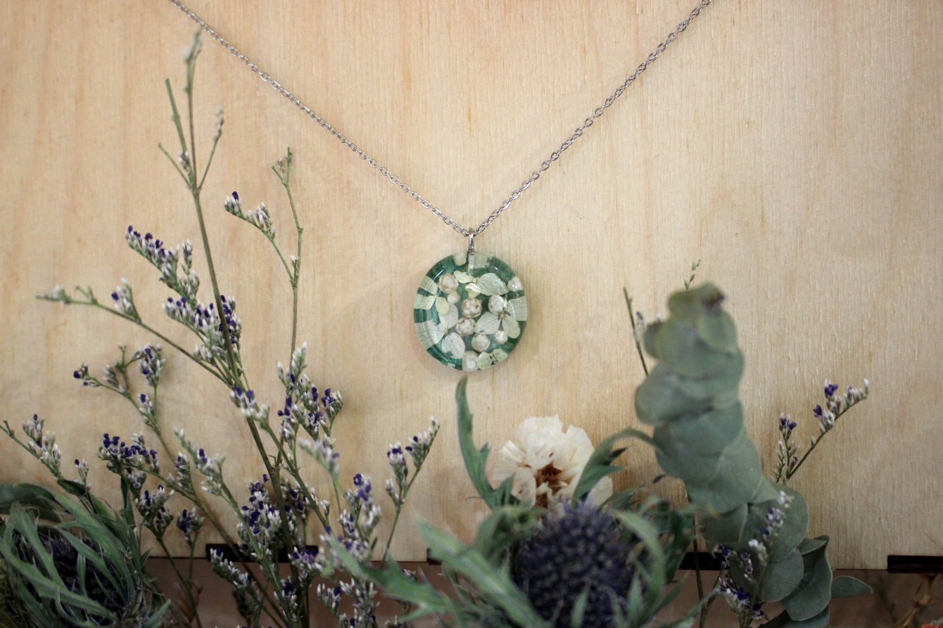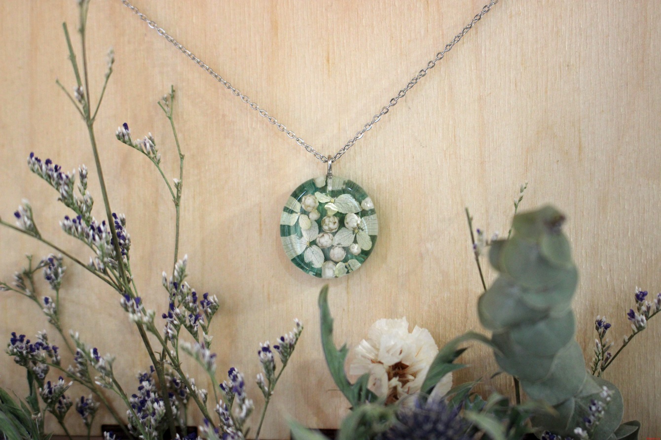 При создании композиции используется итальянская эпоксидная смола, озотамнус и полевые цветы;