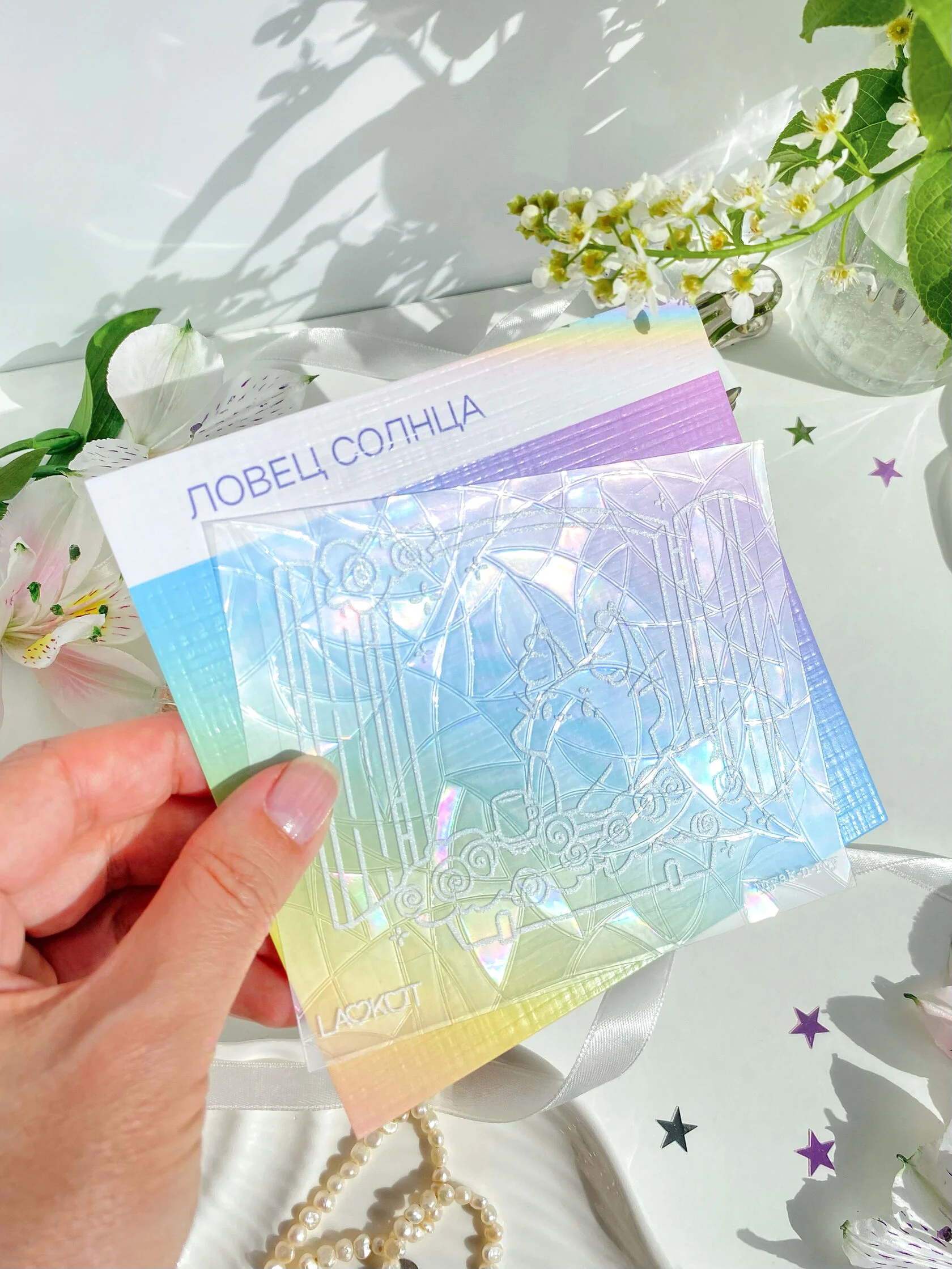 Наклейка на окно для преломления солнечных лучей и эффекта радужного рассеивания по помещению.
