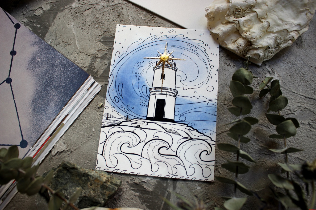 Открытка «Маяк, Лето» с поталью, Aleksandrett