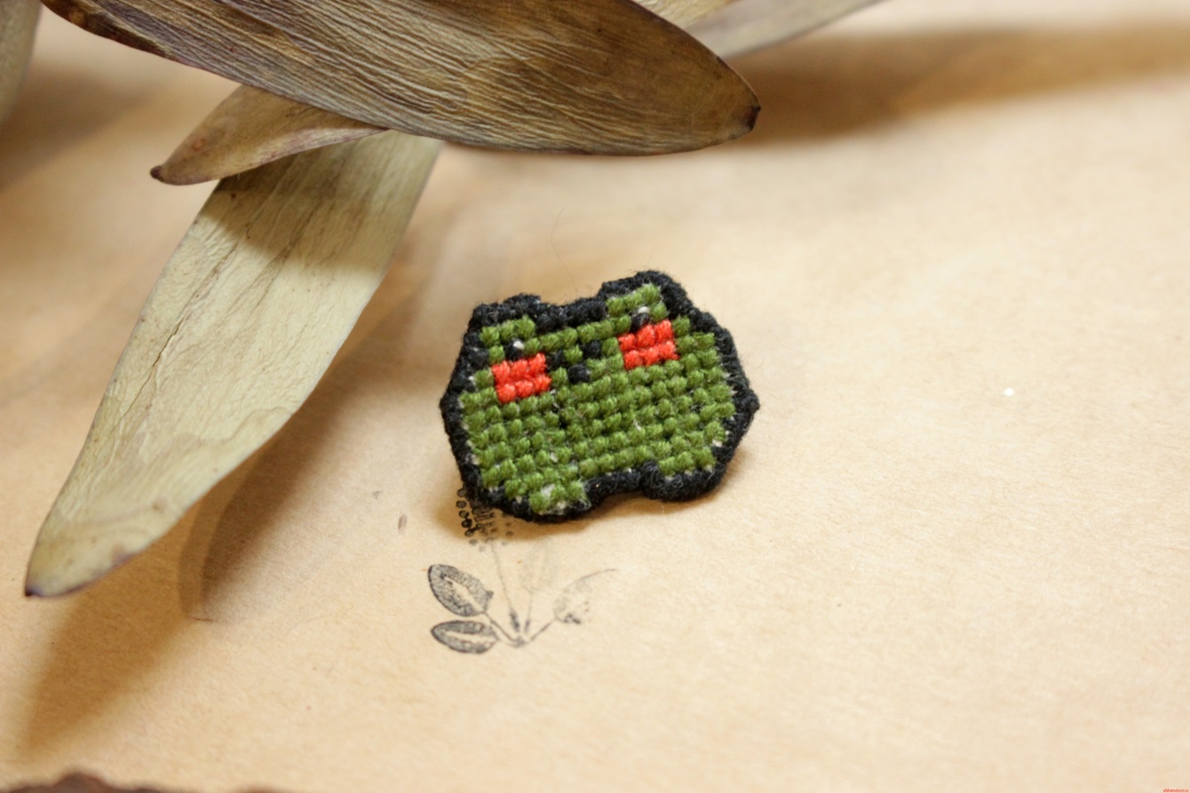 Пин «Жабка тёмно-зелёная» с вышивкой Threadpunk