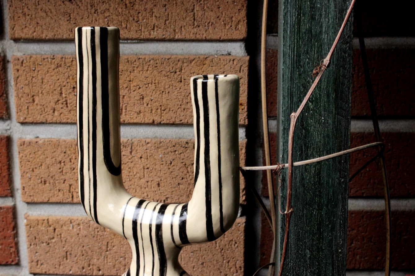 Двойной чёрный подсвечник из керамики Размер: ~ 20 х 11, 5 см Керамические изделия сделаны в мастерской из Владивостока