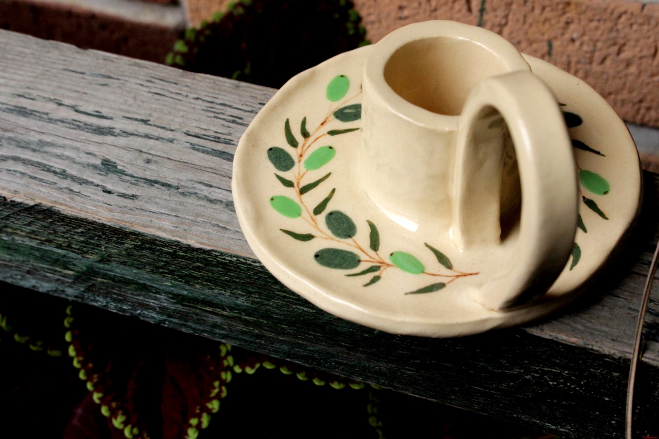 Подсвечник с растительным узором из керамики зелёный Размер: ~ 6 х 10 см Керамические изделия сделаны в мастерской из Владивостока