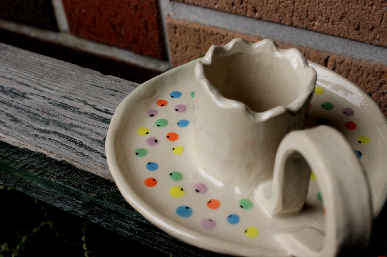 Подсвечник с узором в горошек из керамики Размер: ~ 6 х 13 см Керамические изделия сделаны в мастерской из Владивостока