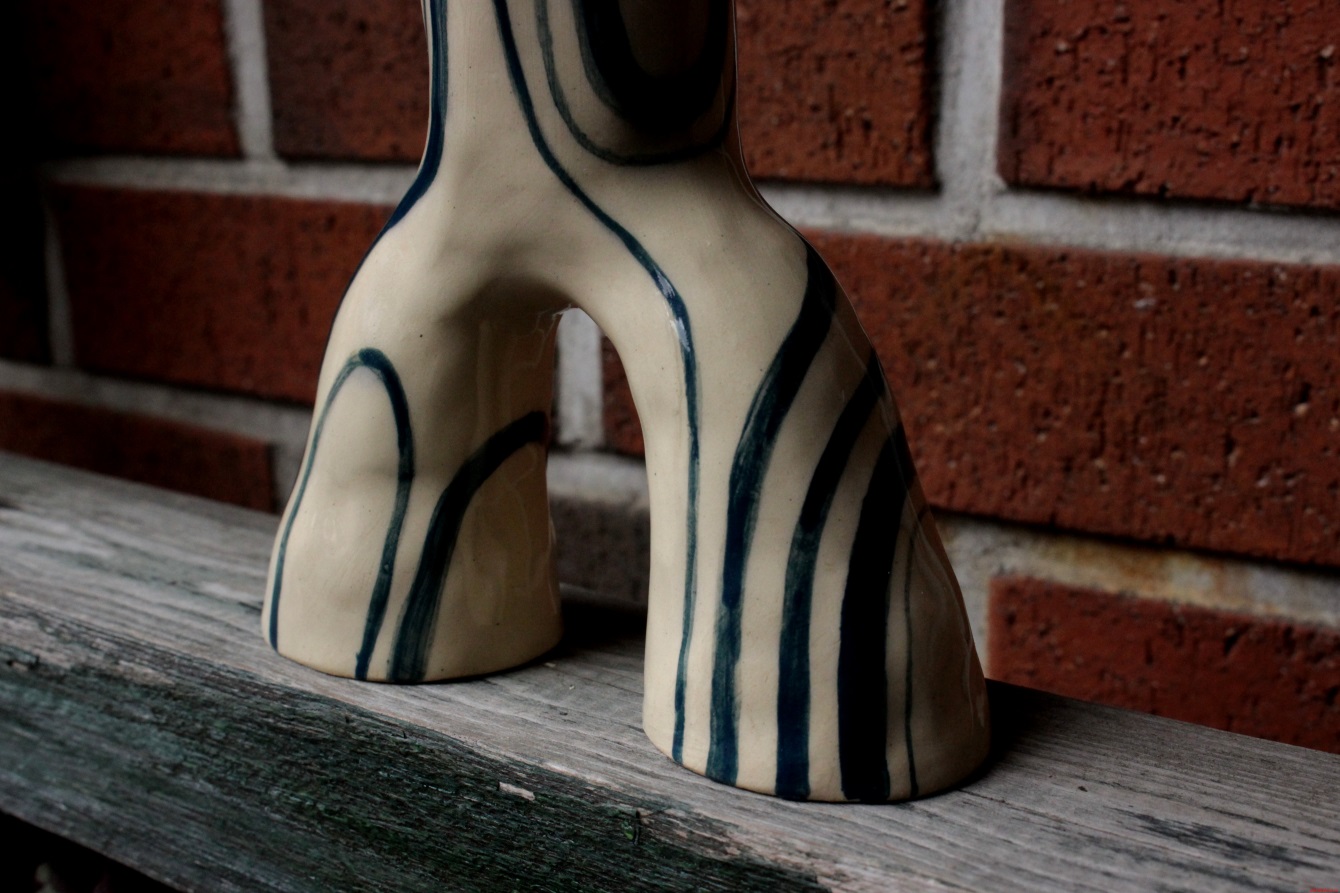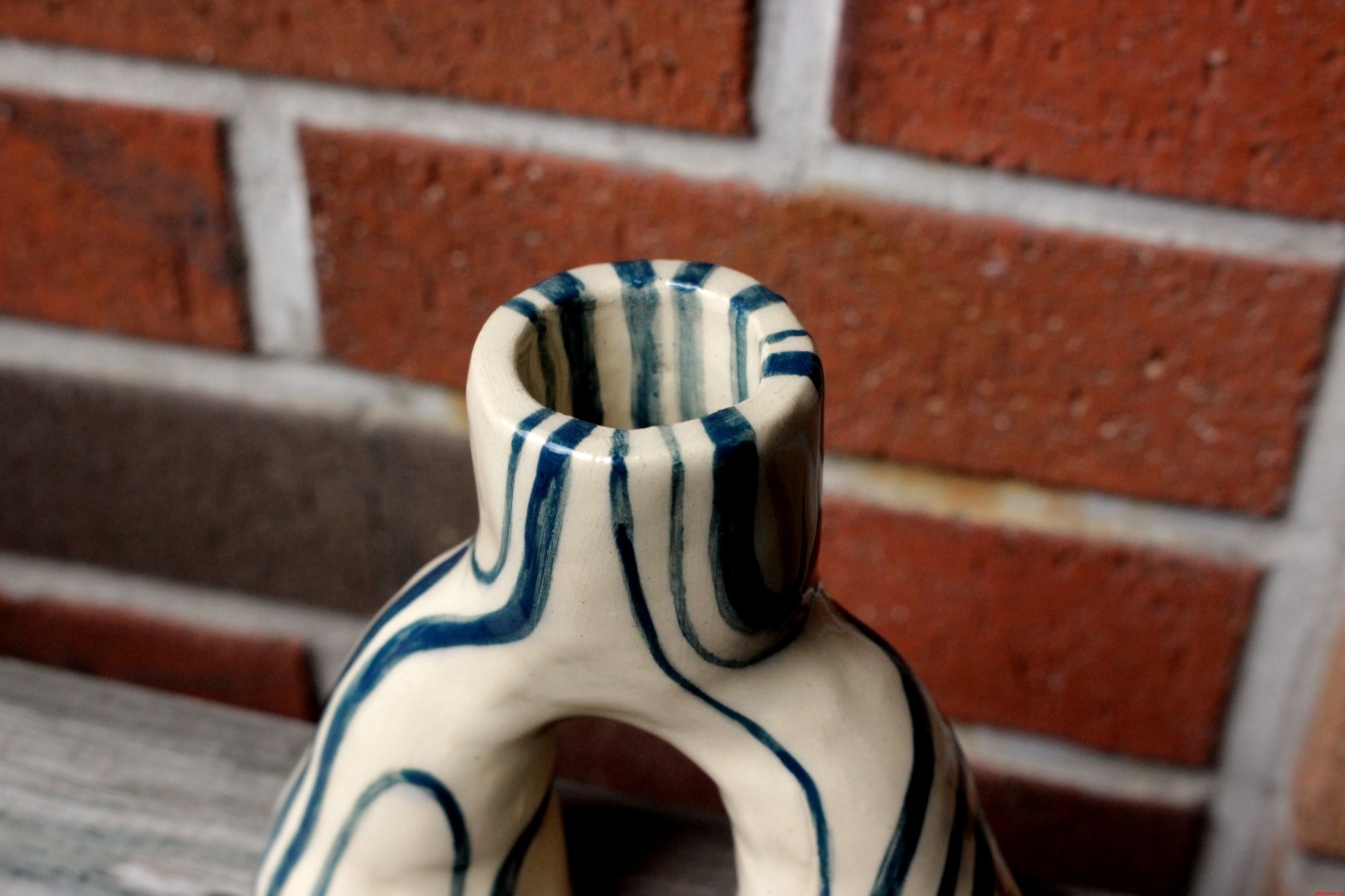Синий подсвечник с двумя опорами из керамики Размер: ~ 10 х 11 см Керамические изделия сделаны в мастерской из Владивостока