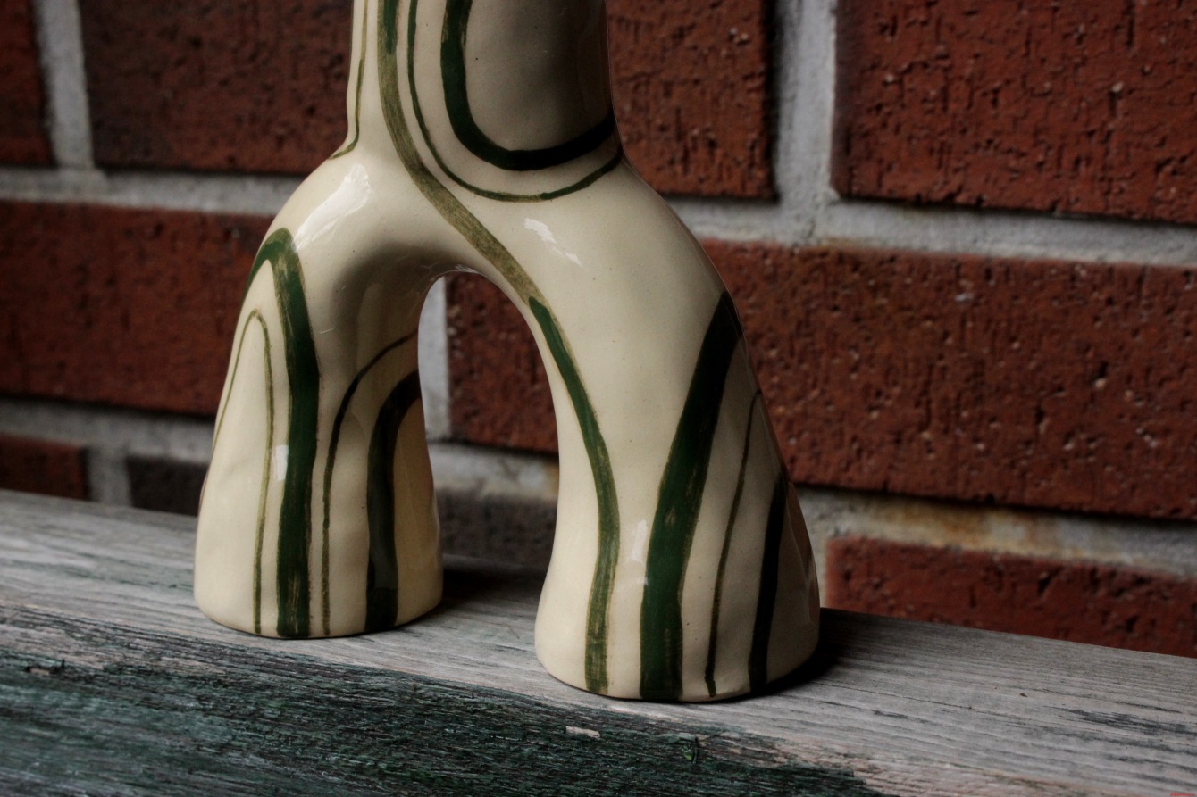 Зелёный подсвечник с двумя опорами из керамики Размер: ~ 12 х 11 см Керамические изделия сделаны в мастерской из Владивостока