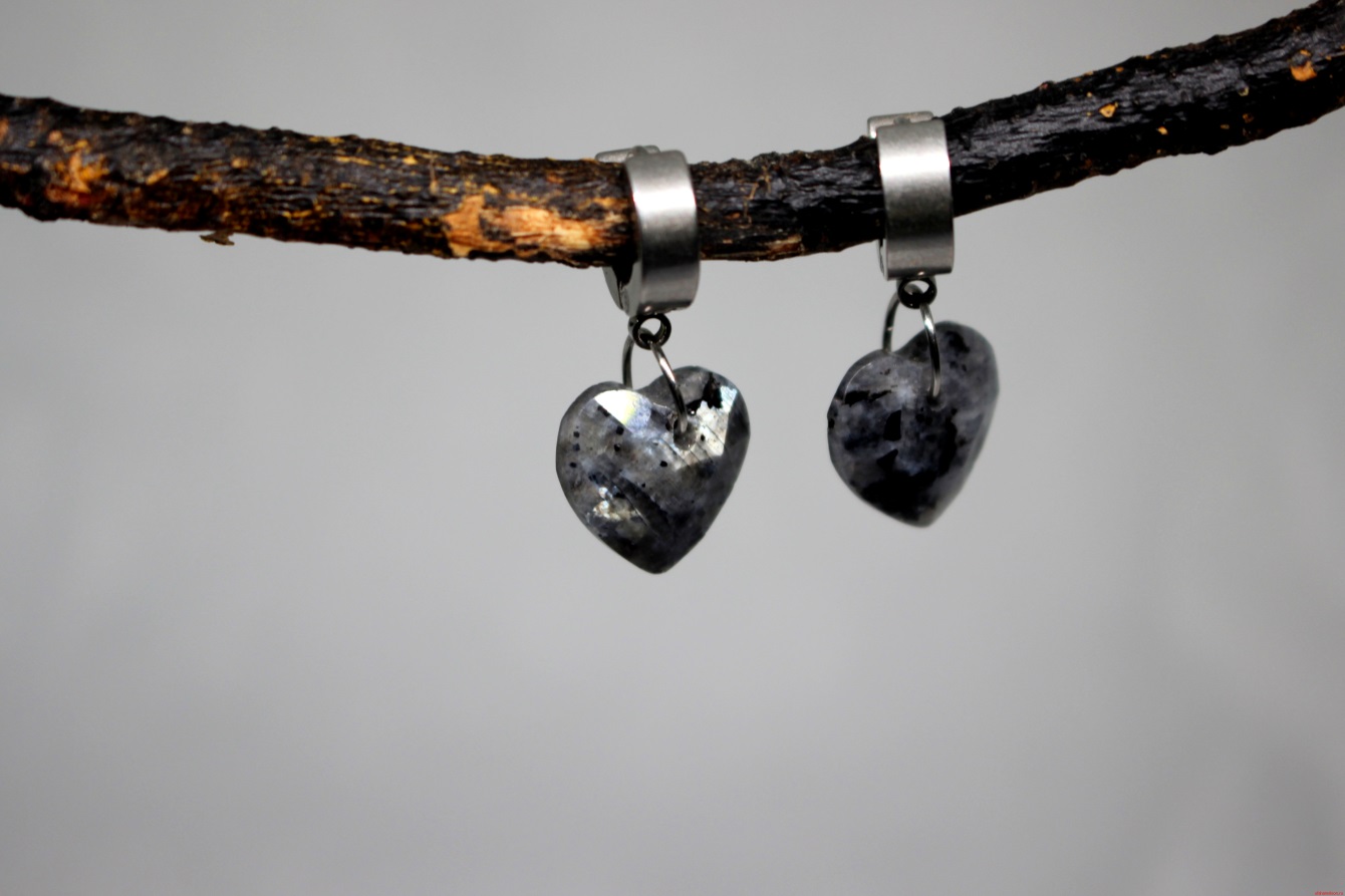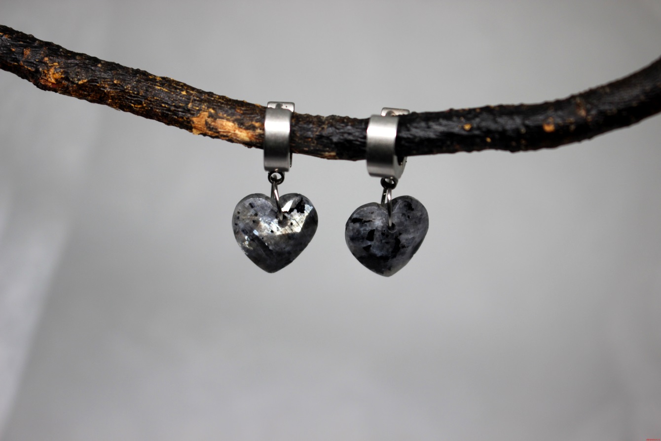 Серьги из хирургической стали, вставка из камня — ларвикит; Размер изделия: 2, 5 cм