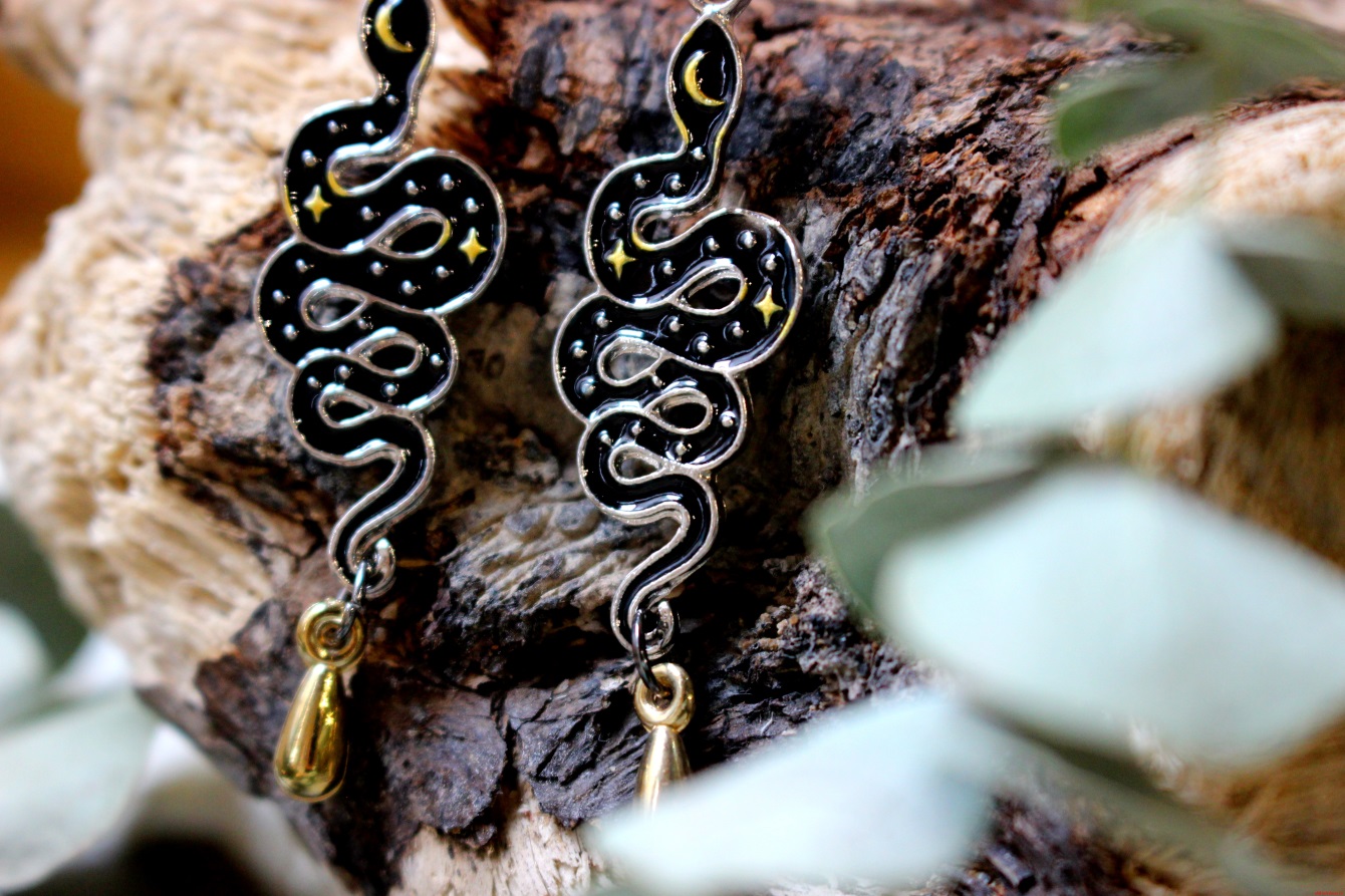 Серьги «Змеи» чёрные с каплями