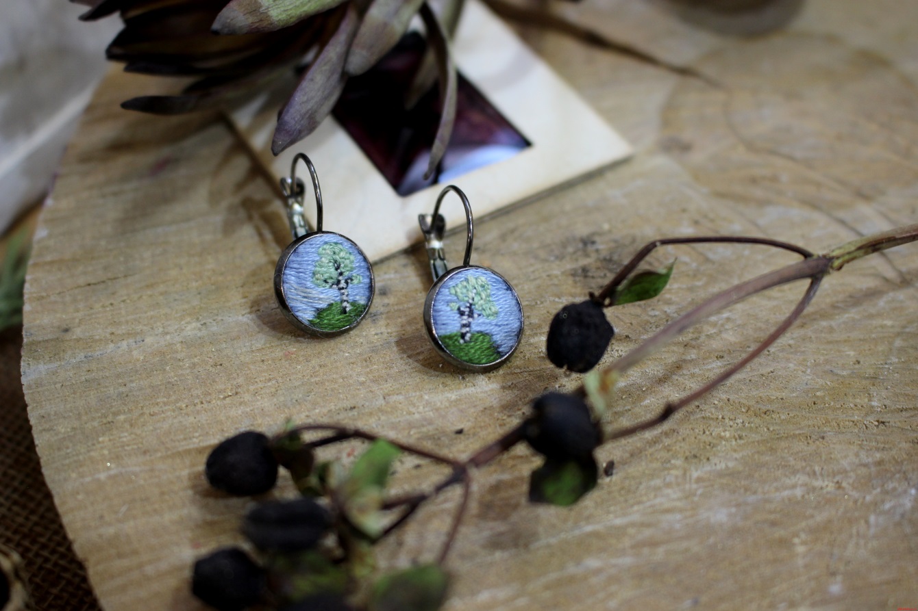 Серьги «Берёзки» с вышивкой Threadpunk