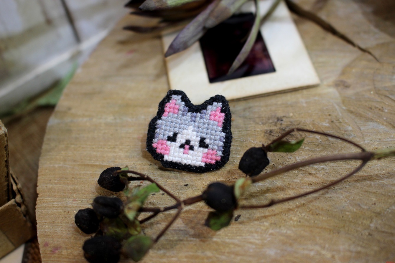 Пин «Разноцветный котик» (серый) с вышивкой в ассортименте Threadpunk