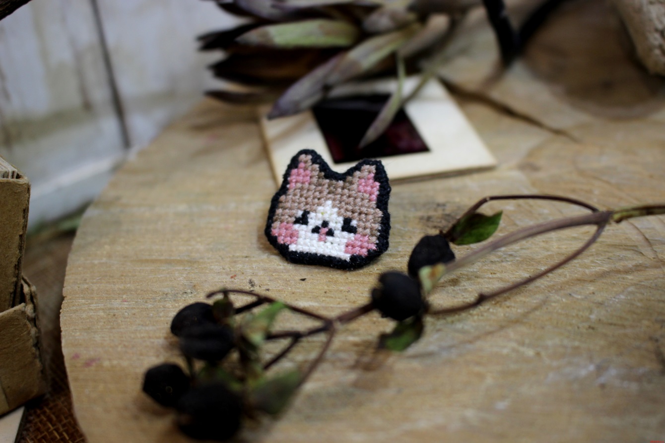 Пин «Разноцветный котик» (коричневый) с вышивкой в ассортименте Threadpunk
