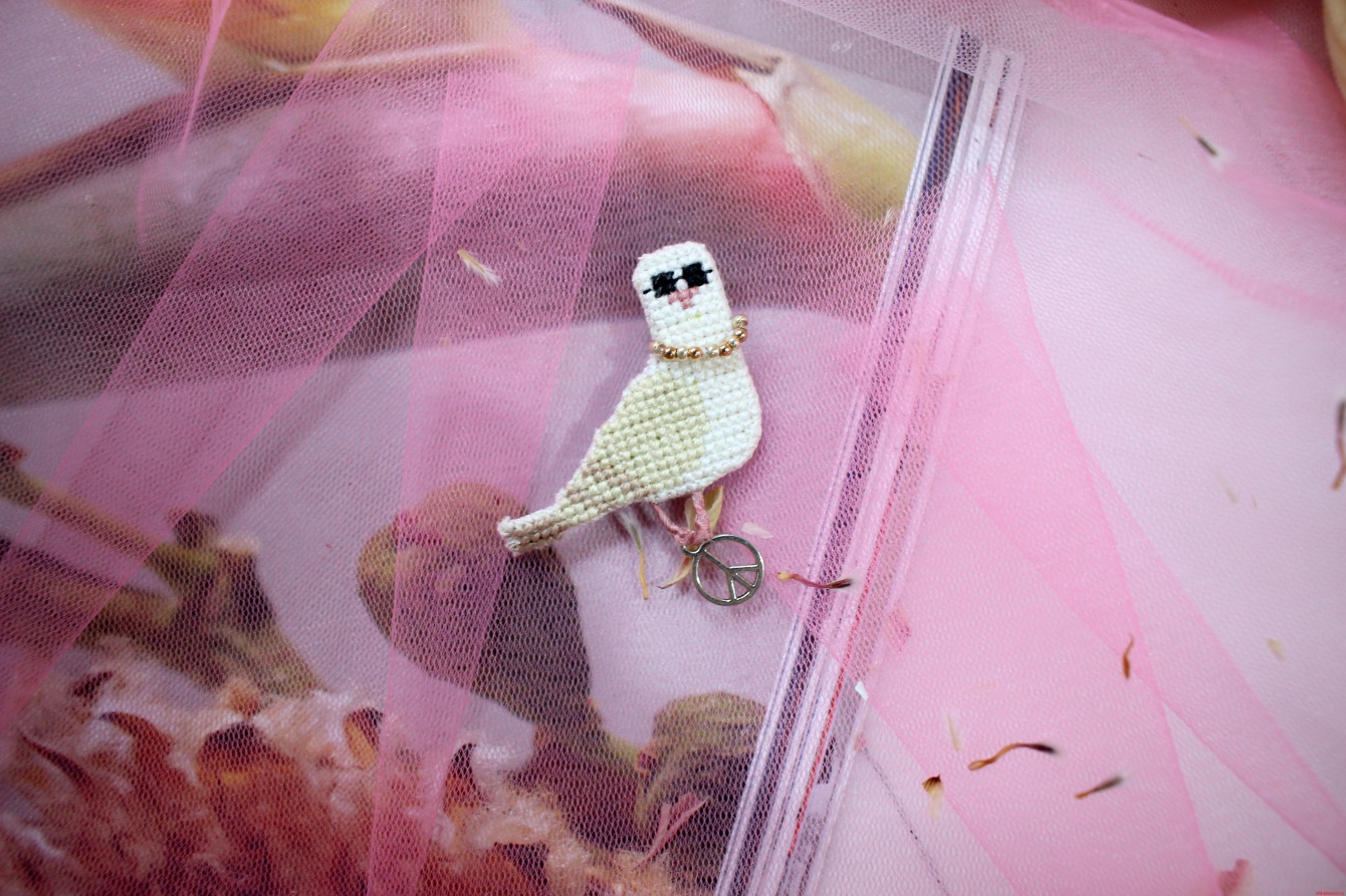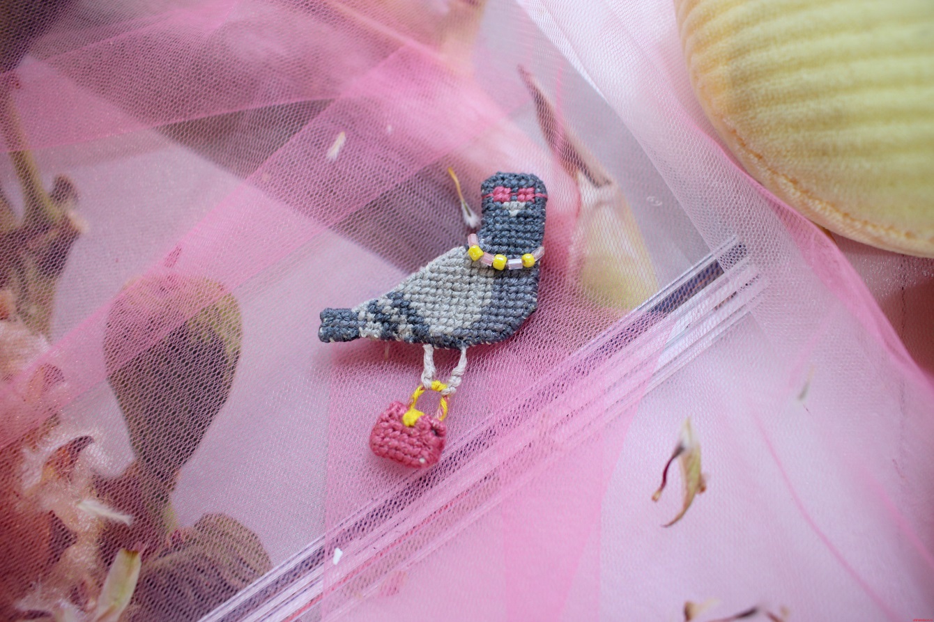 Брошка «Модный голубь» с вышивкой Threadpunk