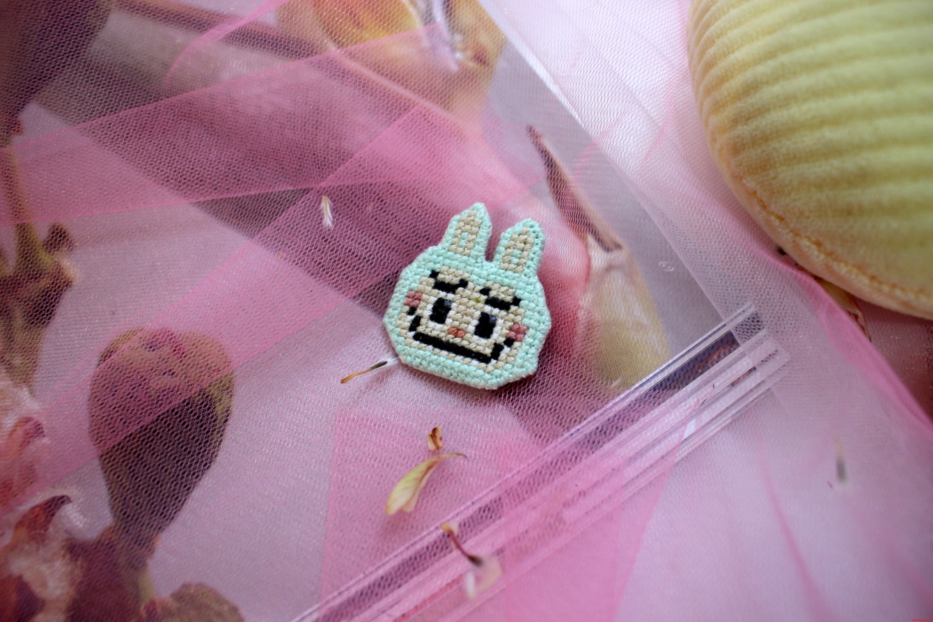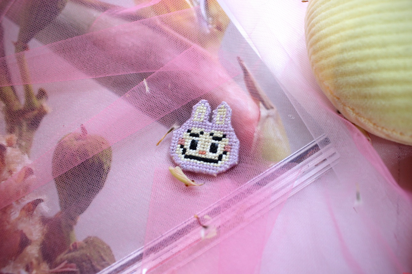 Брошка «Лабубу» (брюзовый) c вышивкой в ассортименте Threadpunk