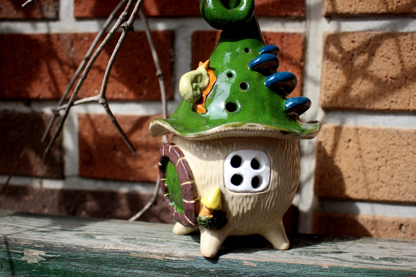Шкатулка в виде домика-гриба с зелёной шапочкой и улиткой из керамики Размер: ~ 15 см Керамические изделия сделаны в мастерской из Владивостока