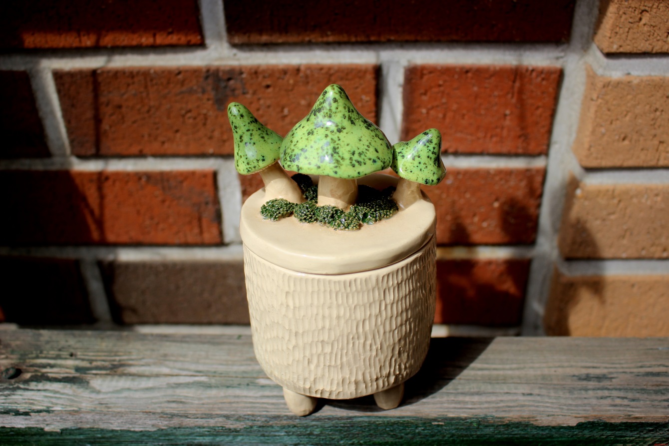 Шкатулка с зелёным грибочками из керамики Размер: ~ 14, 5 см Керамические изделия сделаны в мастерской из Владивостока