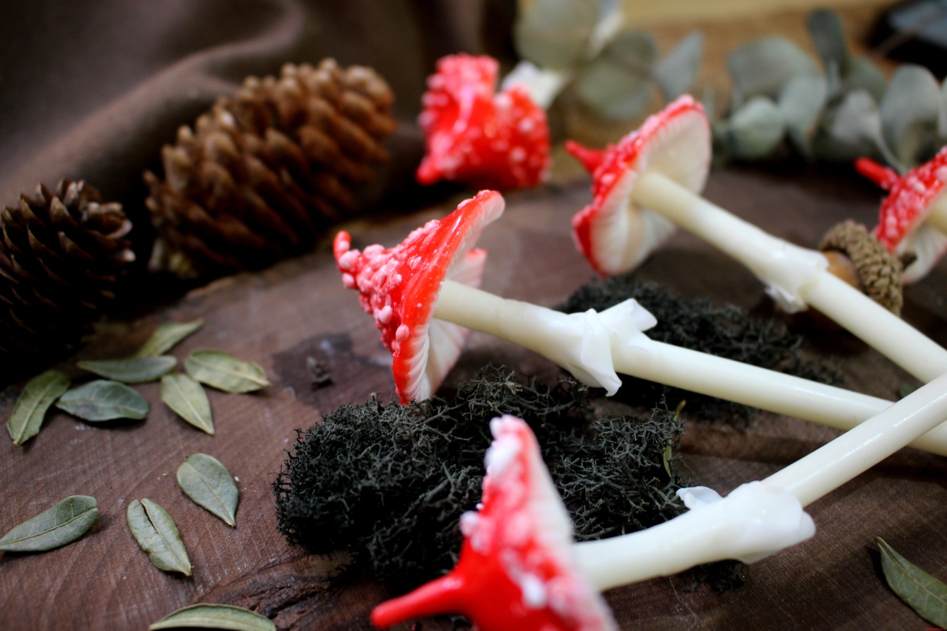 Цена указана за 1 мухоморчик; Свеча из воска; Размер: ~ 16 см; Свечи сделаны мастерской Travamurava (Владивосток)