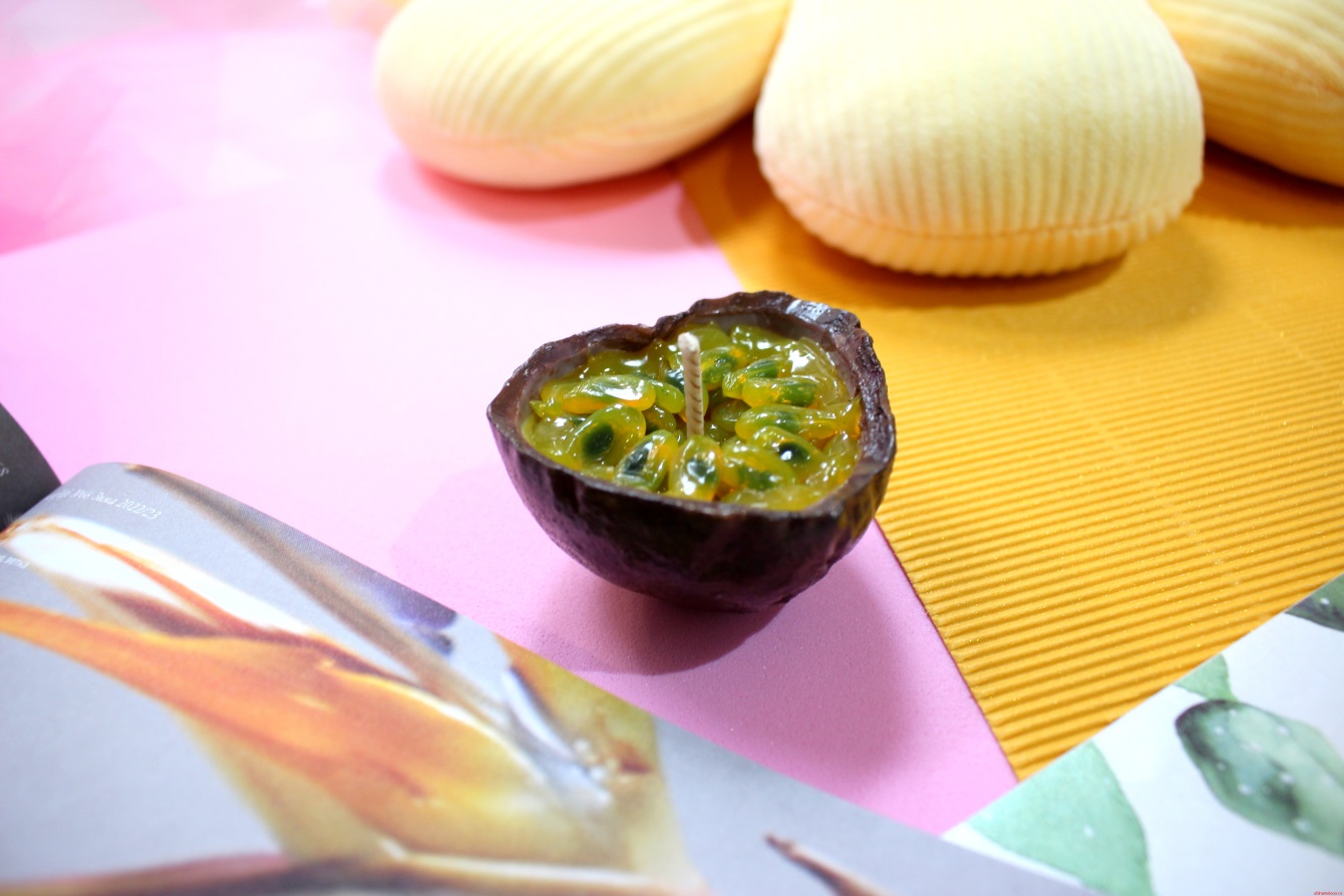 Свеча из воска, которая пахнет маракуйей; Внутри свечи композиция из воска — косточки маракуйи; Фитиль свечи: хлопковый; Размер: ~ 3, 5 см; Свечи сделаны мастерской Travamurava (Владивосток)