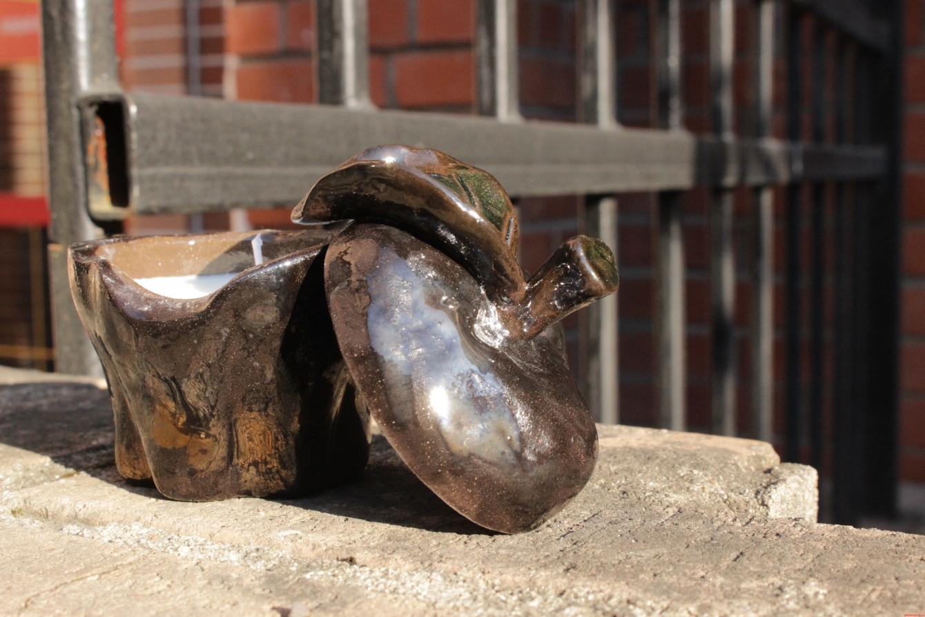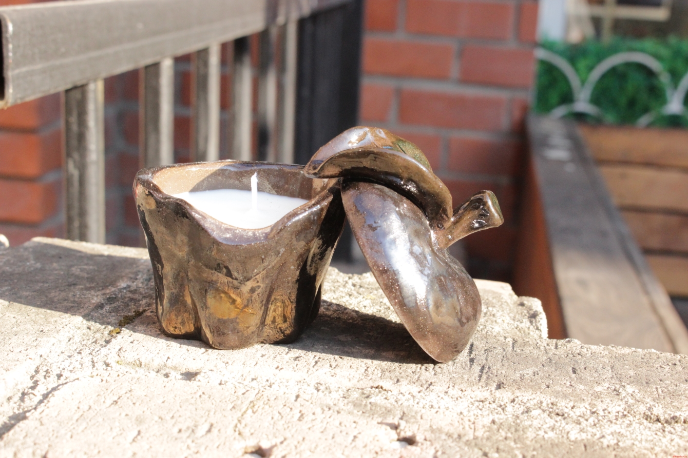 Свеча из керамики с ароматом миндаль Размер: ~ 8 х 7 см Керамические изделия сделаны в мастерской из Владивостока
