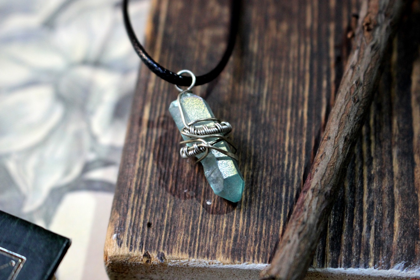 Подвеска из нейзильбера и латуни с голубым кристаллом-кварцем Sasha Decor