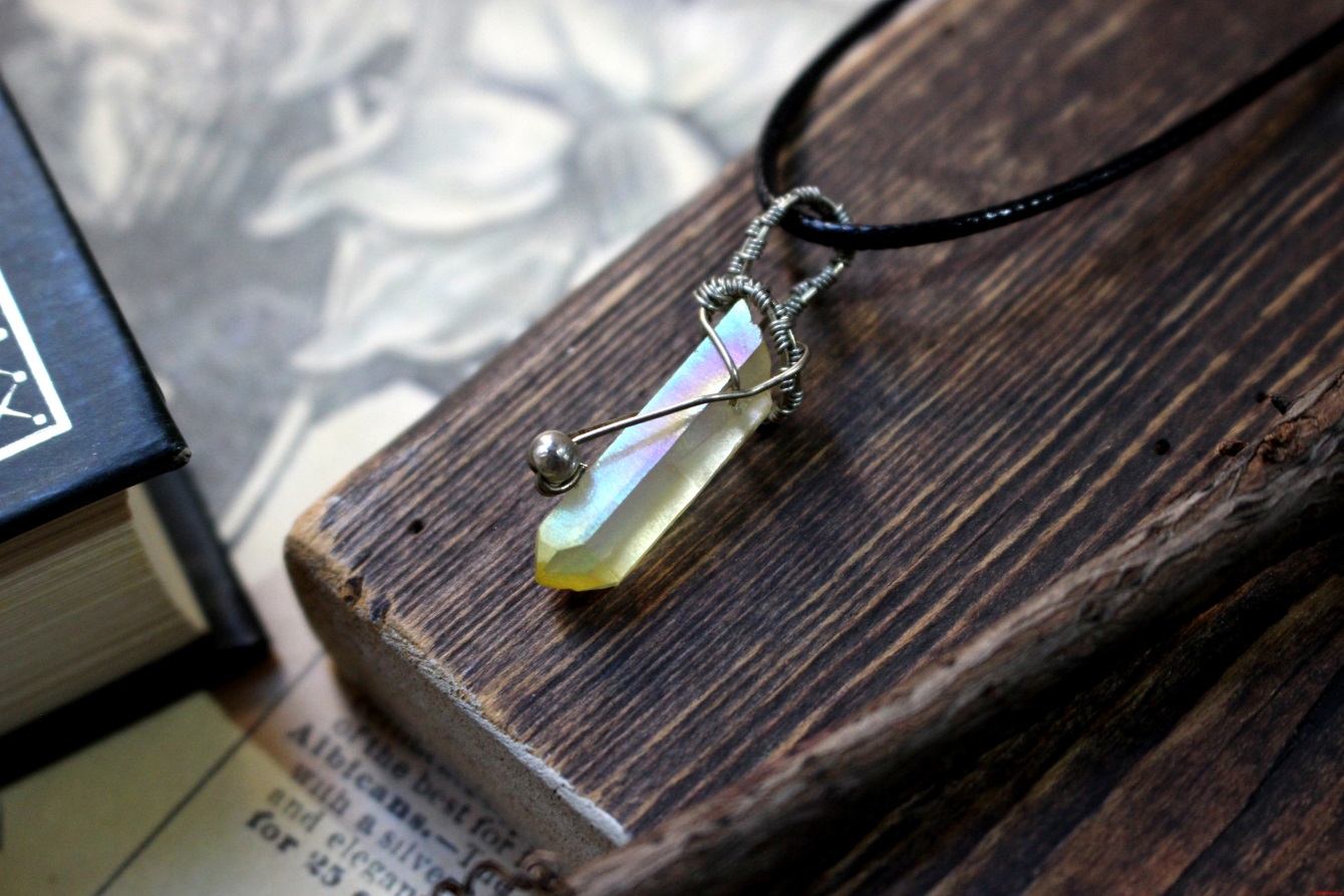 Подвеска из нейзильбера и латуни с жёлтым кристаллом-кварцем Sasha Decor