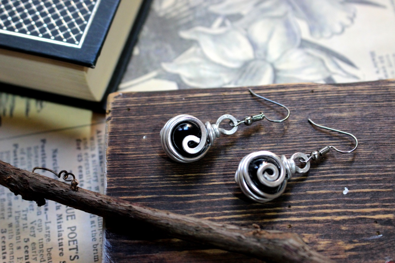 Серьги плетённые из алюминия с чёрными бусинами Sasha Decor
