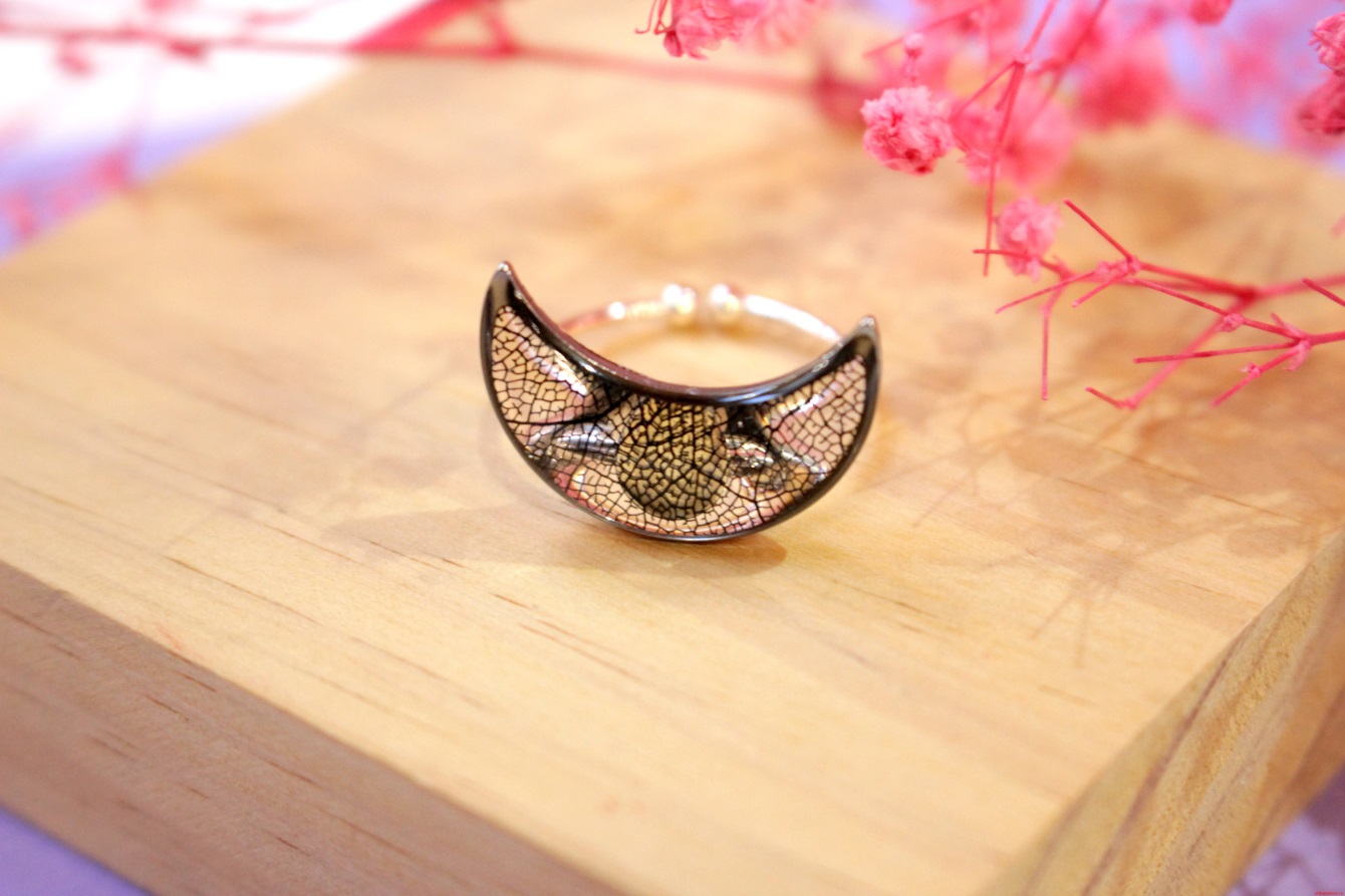 Кольцо-полумесяц прозрачное с чёрной сеточкой