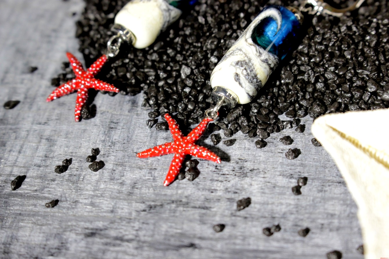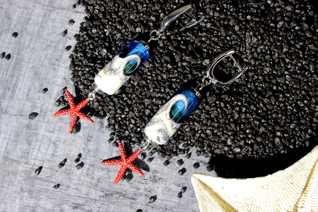 Украшения «Океан Мурано» создаются мастерицей Кристиной из Владивостока. Она работает в технике «Лэмворк» с использованием муранского стекла. Коллекцию для нашего магазина мы разрабатывали совместно: подбирали формы для моделей, цвета стекла и фурнитуру. Постарались сделать линейку украшений максимально разнообразной: от минимализма и лаконичных оттенков цвета слоновой кости до ярких, как леденцы, серёжек. Не забыли и про море: советуем обратить внимание на модель «Ветер», а также серёжки с морскими звёздами.
